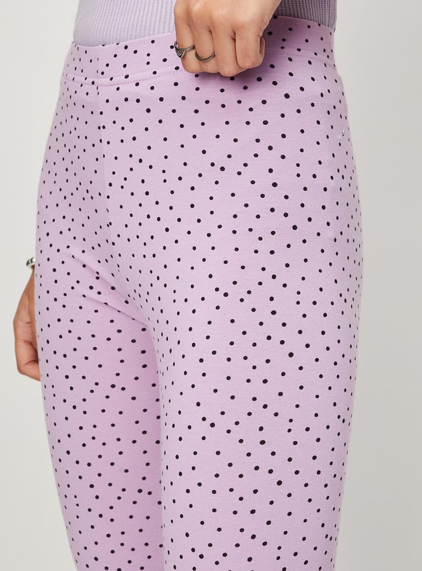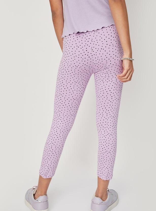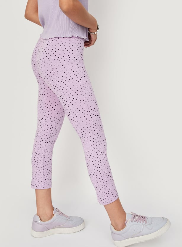 Spice up her casual outfits with this pair of leggings with all-over prints. Crafted in a three-quarter profile, this pair is designed with an elasticated waist. Style these leggings with a tee and sneakers to ace her look.
