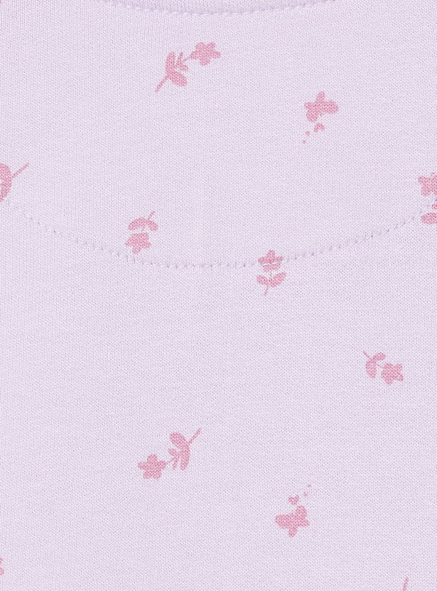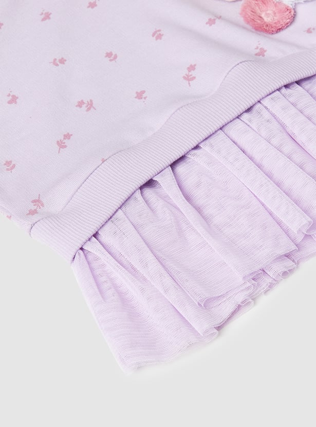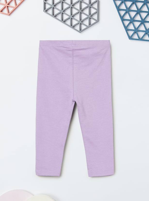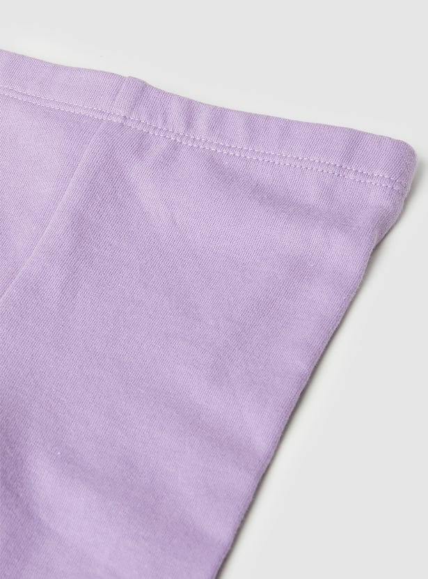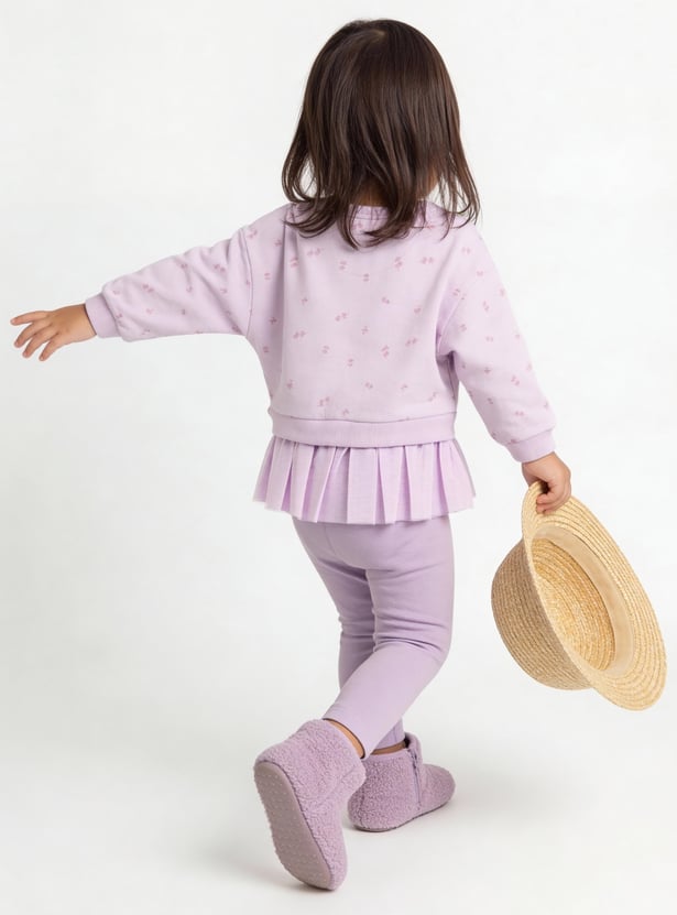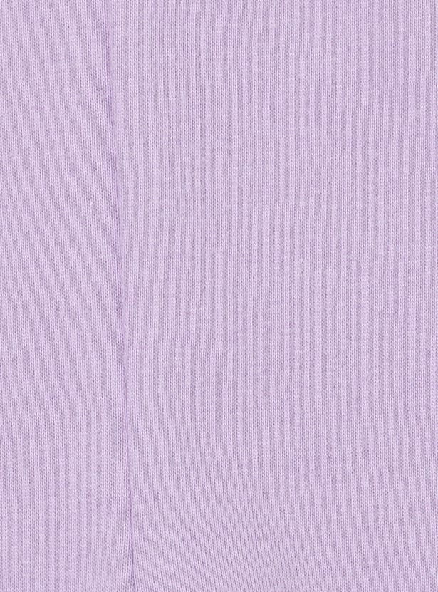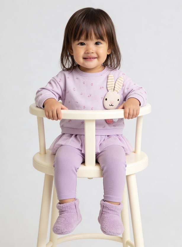 This leggings set adds a playful touch to comfy dressing. The top features a cute bunny detail with a mesh-lined waist, round neck, full sleeves, and ribbed hems, while the matching solid leggings have an elasticated waist for easy wear.