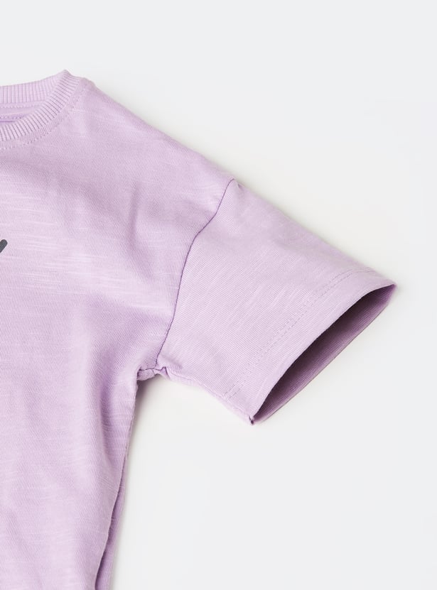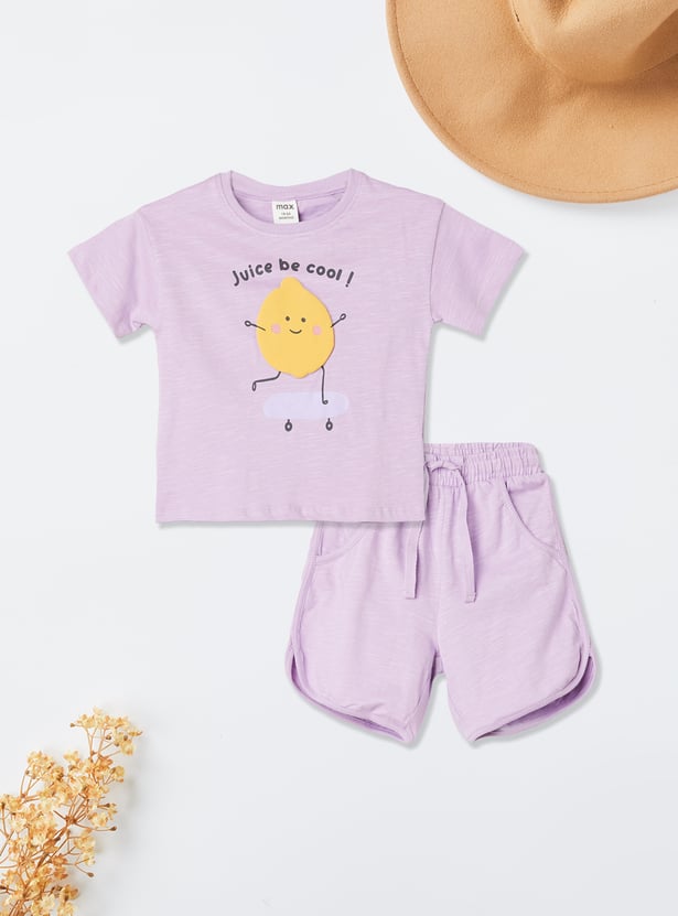 Get ready for ultimate comfort and style with this printed shorts set! Featuring a trendy printed t-shirt with a round neck and half sleeves, paired with solid shorts and a drawstring closure, it's the perfect outfit for laid-back days or weekend relaxation.