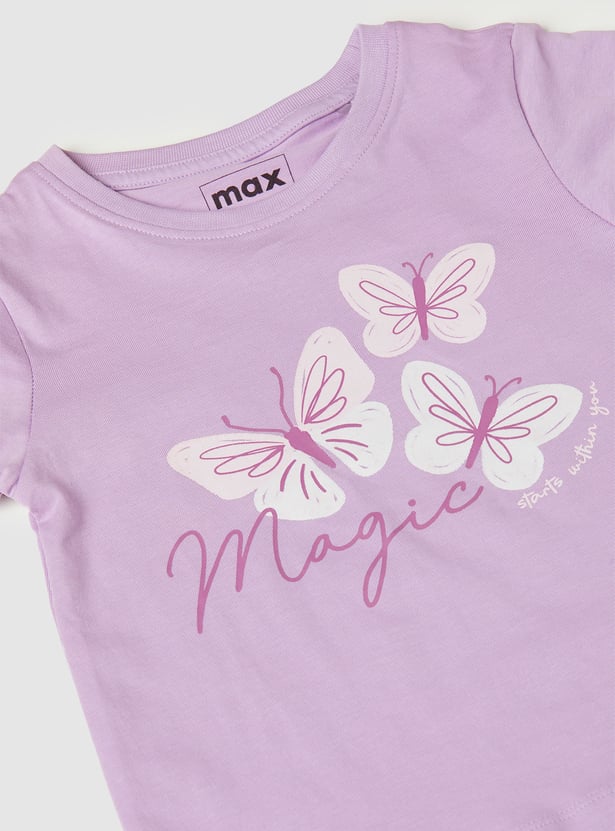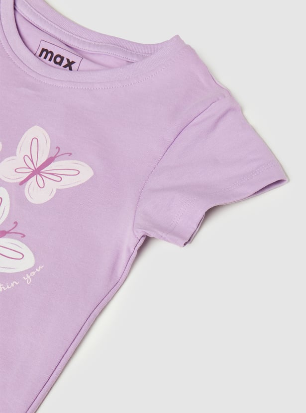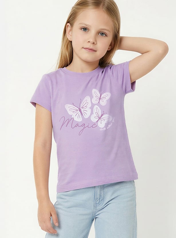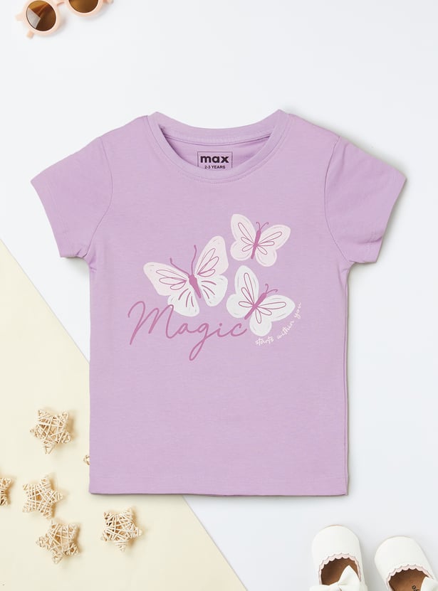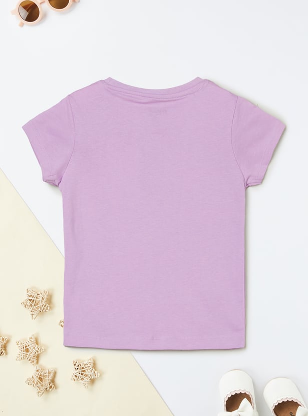 Add a sweet touch to your casual wardrobe with this printed T-shirt. Featuring a classic round neck and half sleeves.