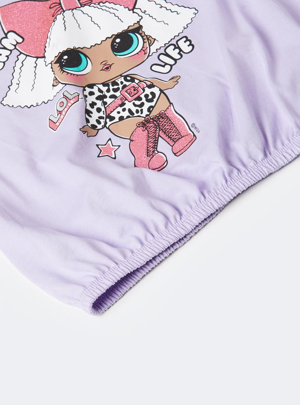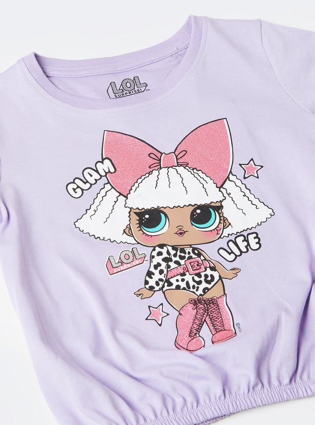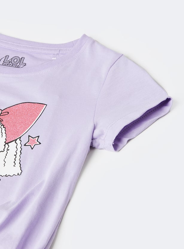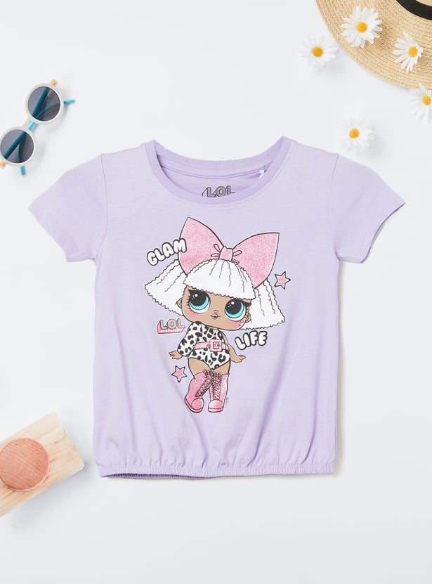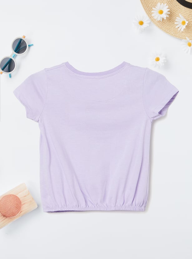 This printed top features a fun graphic design with a round neck and half sleeves. The elasticated hem adds a stylish, fitted touch to the relaxed silhouette.