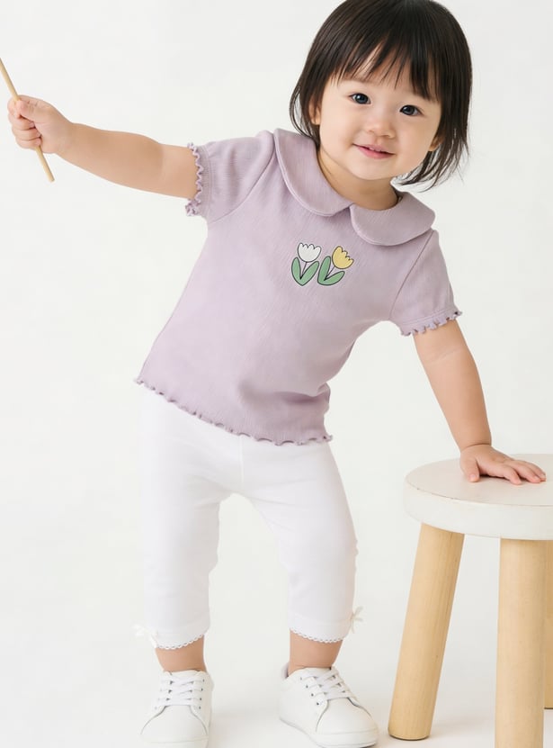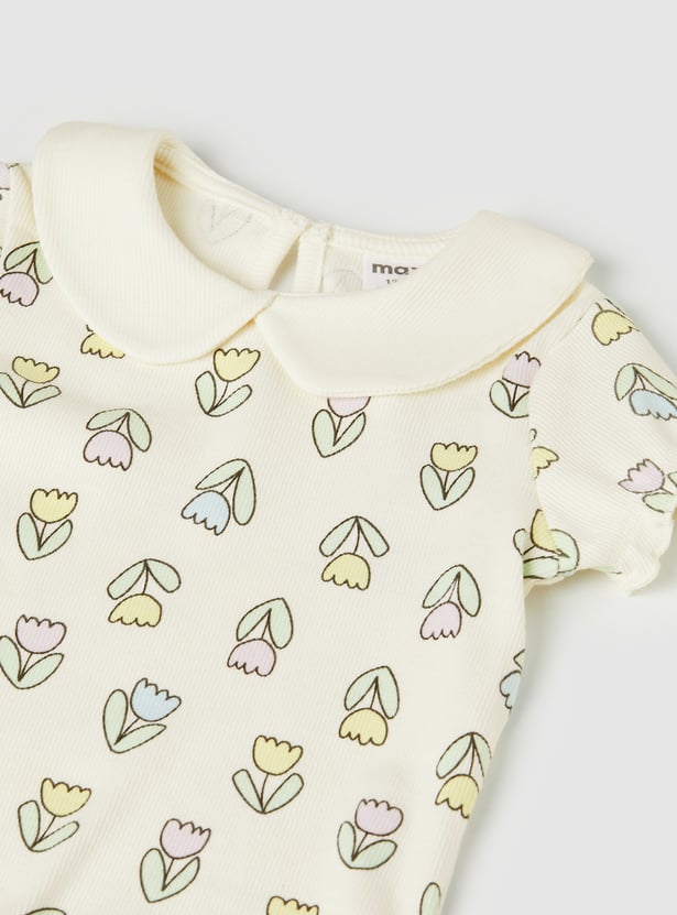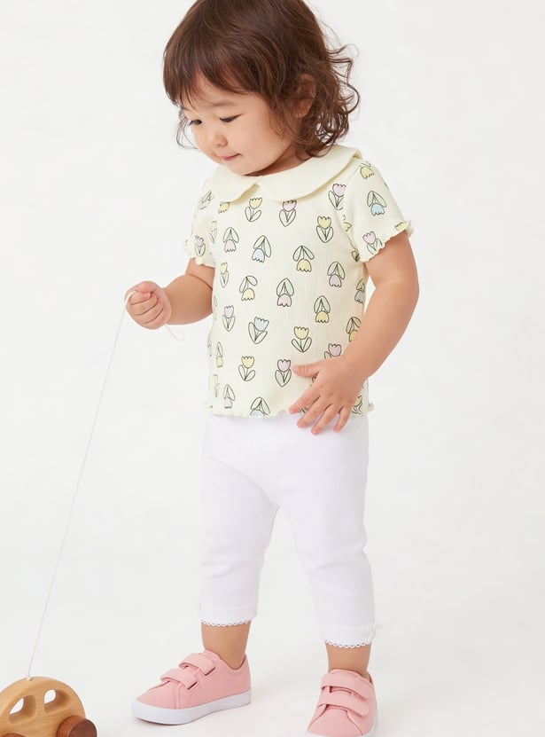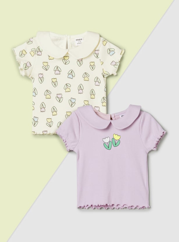 Add charm to your little one's wardrobe with this pack of tops. Featuring a delightful floral print and a Peter Pan collar, these tops offer a regular fit with half sleeves. Perfect for casual outings, these tops ensure both style and comfort.