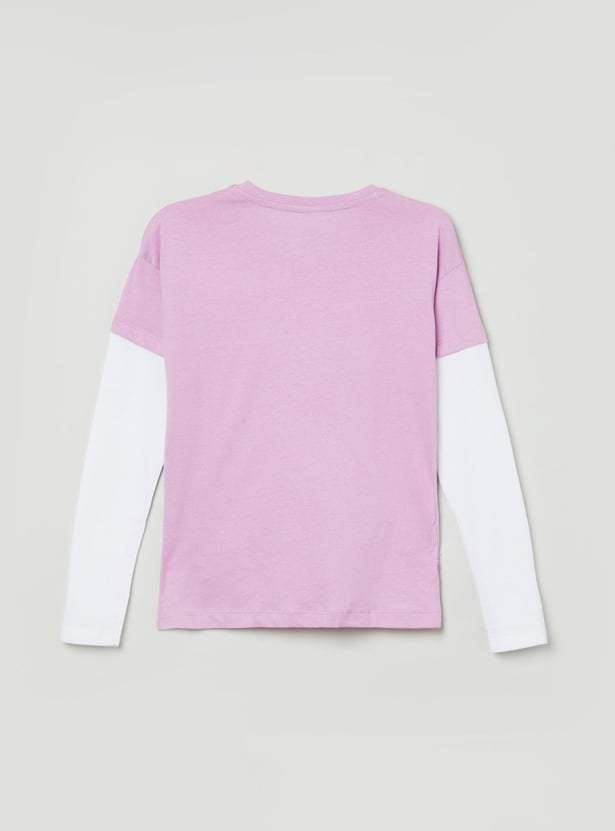 Add versatility to your basic look with this casual printed T-shirt designed with a round neck and full sleeves.