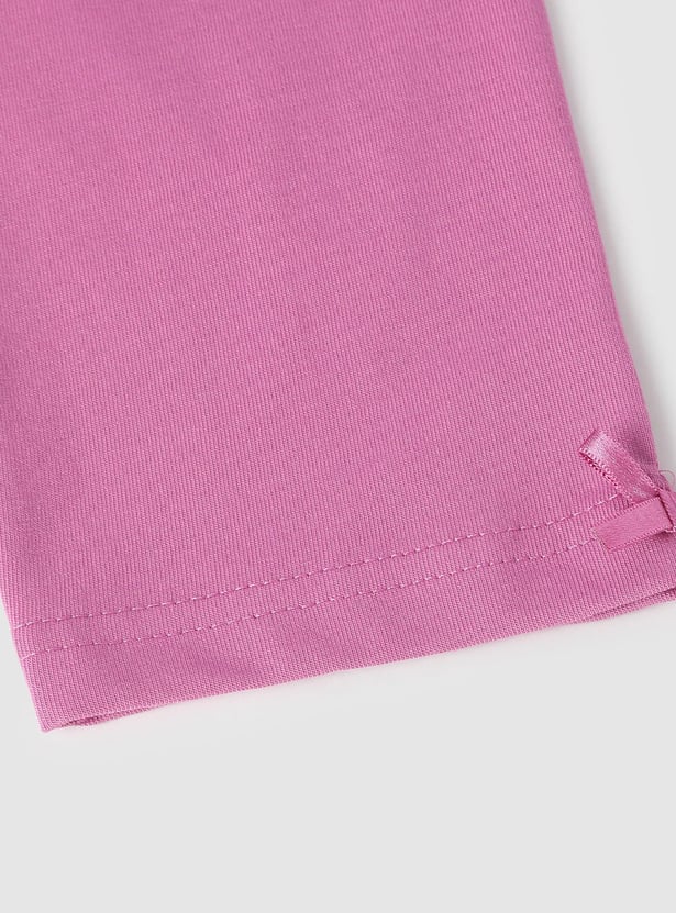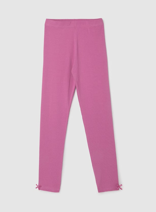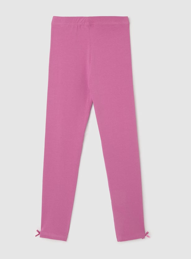 This pair of solid leggings with an elasticized waistband and bow at the hem is the ideal match for your child's casual attire.
