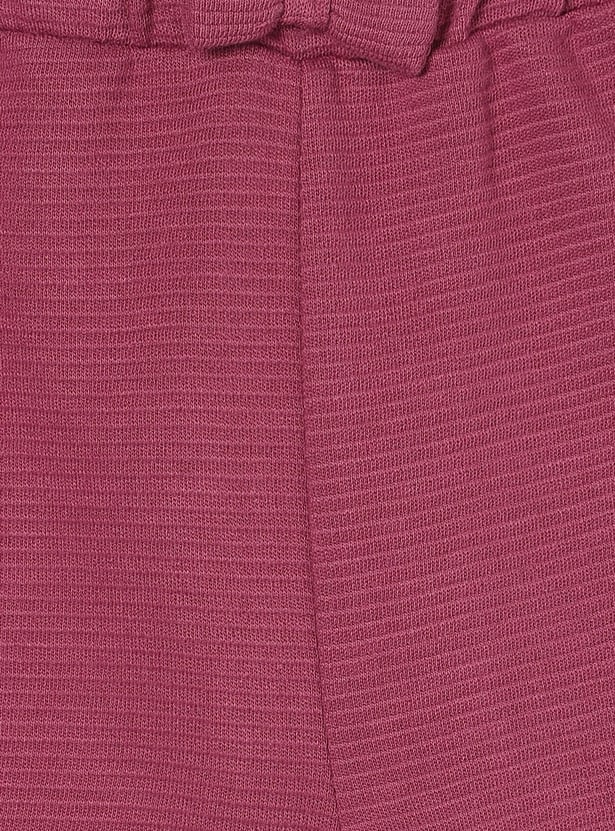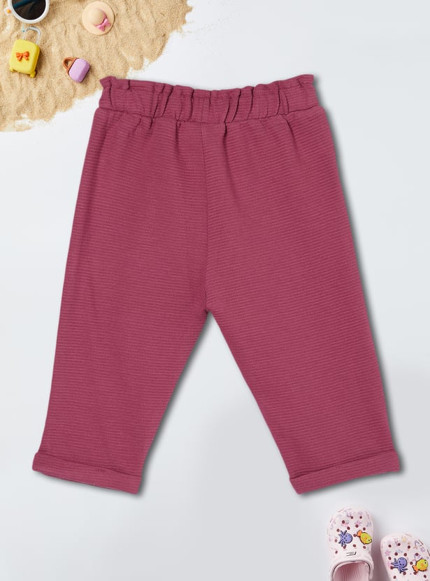 These knit pants are a must-have. Rendered in a solid tone, they feature an elasticated waist adorned with a cute bow for an adorable touch. Perfect for everyday wear, these pants ensure your little one stays comfortable and stylish during playtime and beyond.