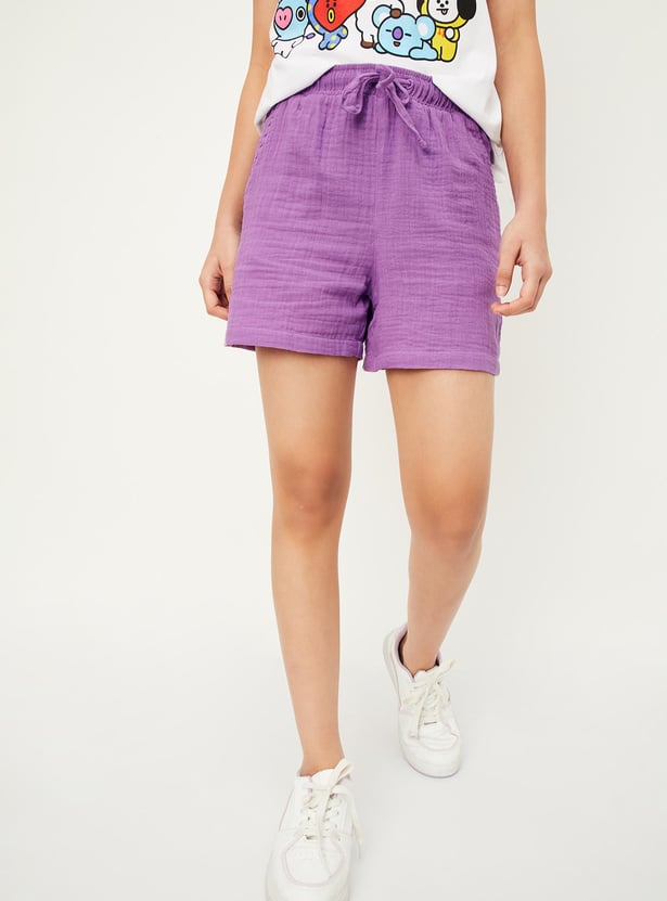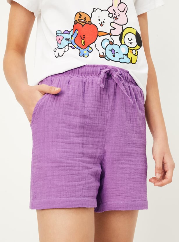 Let your kid walk comfortably throughout your day with this pair of shorts, featuring a textured design, and comes with an elasticated waistband and pockets.