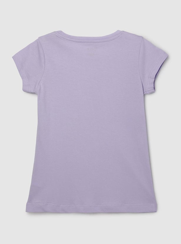 Get your little one vacation-ready with this comfortable and stylish unicorn print T-shirt featuring half sleeves and a round neck.