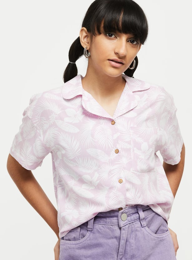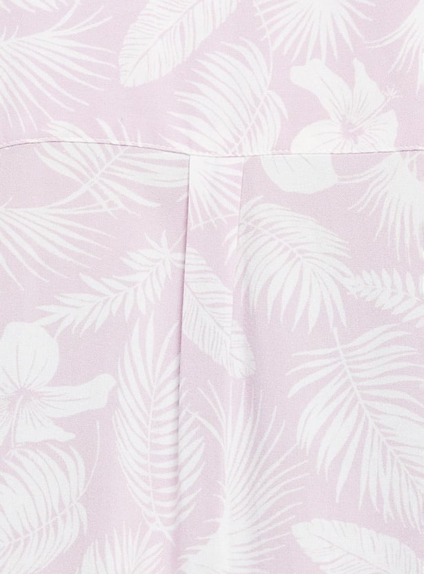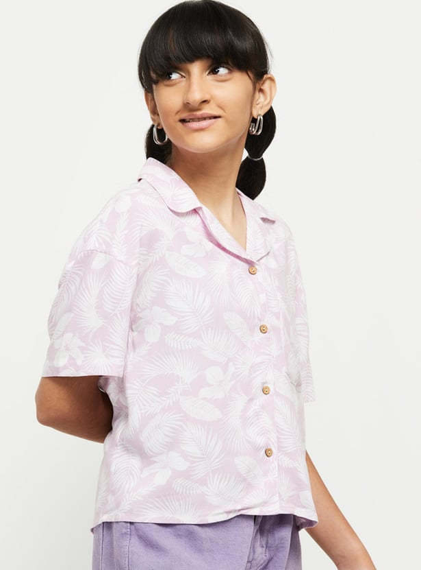 Dress up your girl in the casual comfort, with classic style and appeal. Featuring a smart botanical print shirt, amped up with playful appeal, half sleeves, and lapel collar neck.