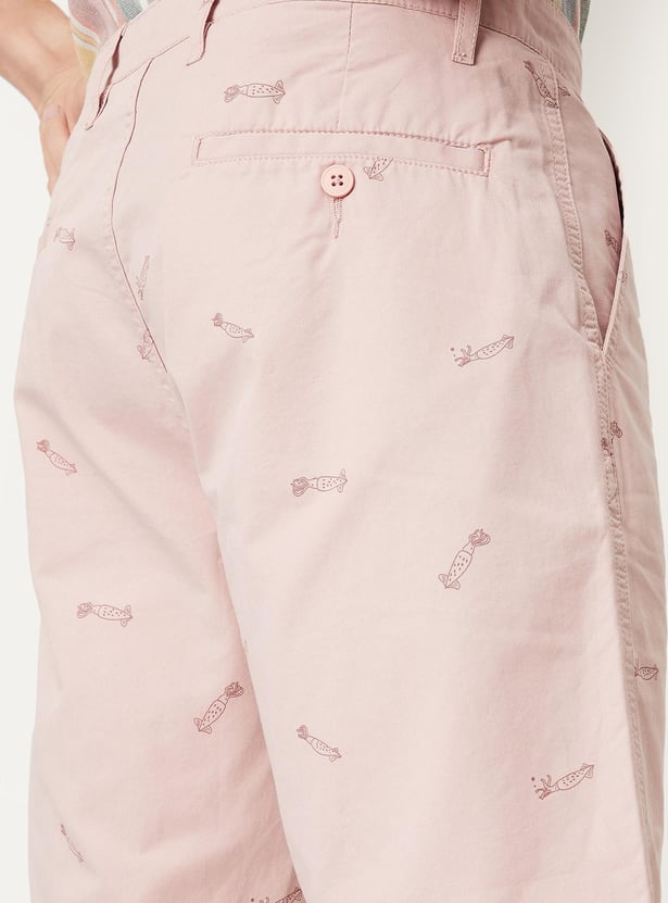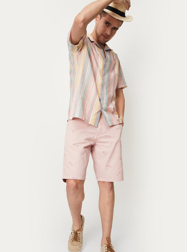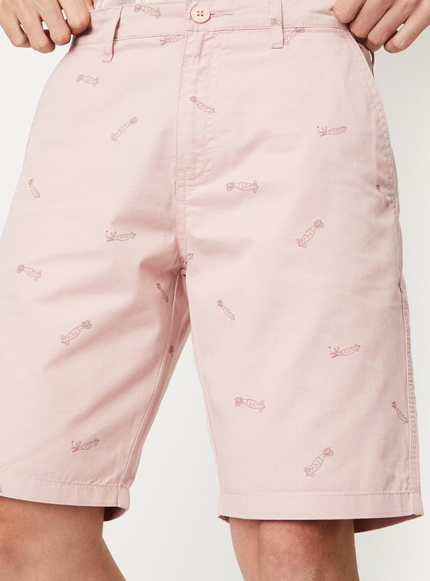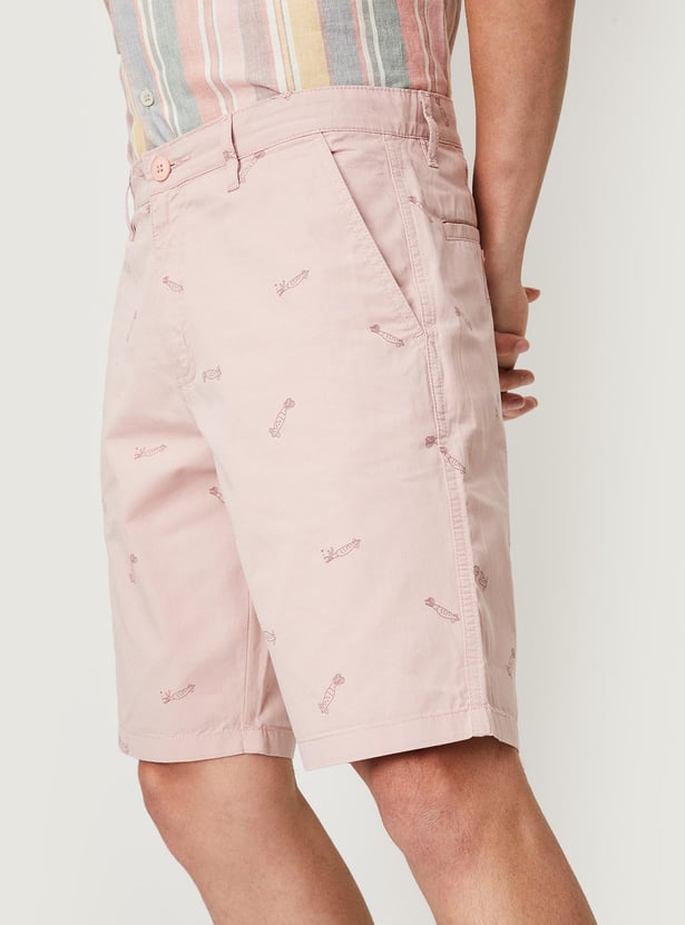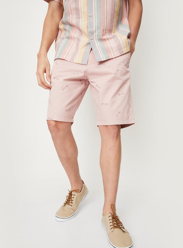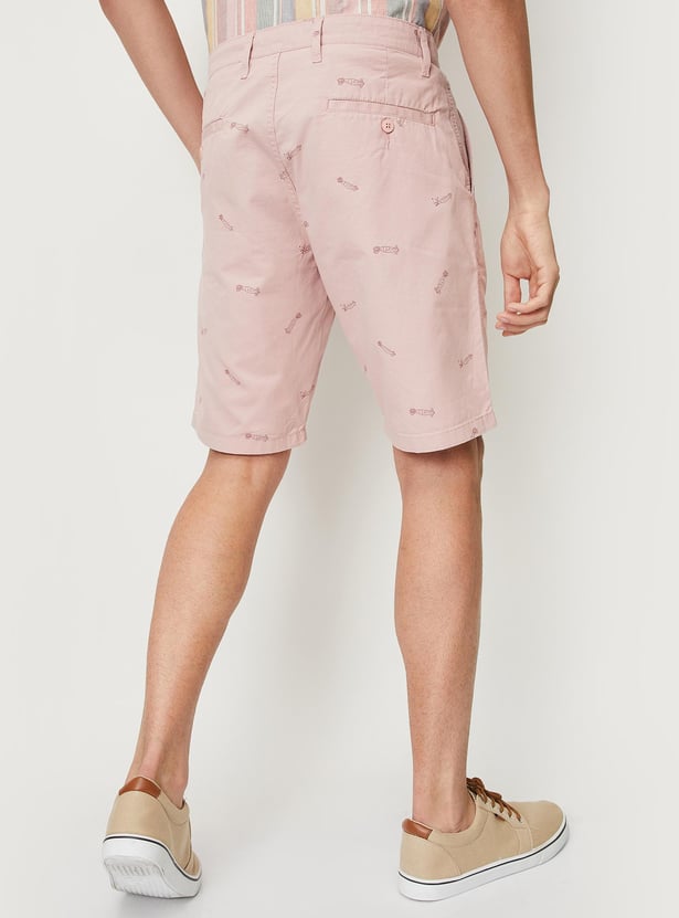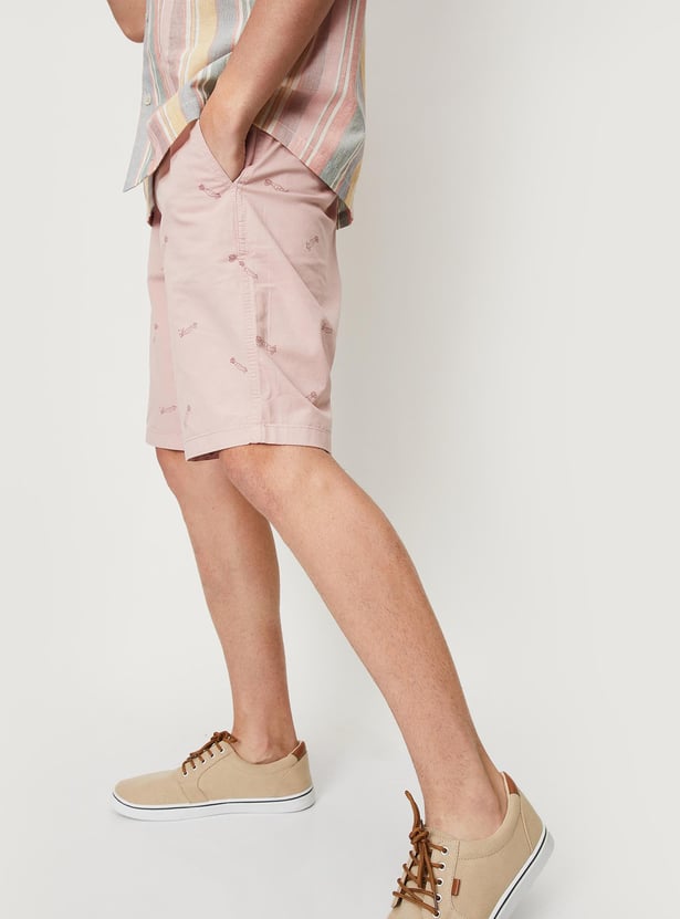 Stay comfortable and stylish all day with this pair of casual shorts. It flaunts a printed surface, pockets, and a button closure. Team it with a t-shirt and lace-up shoes to make a complete look.