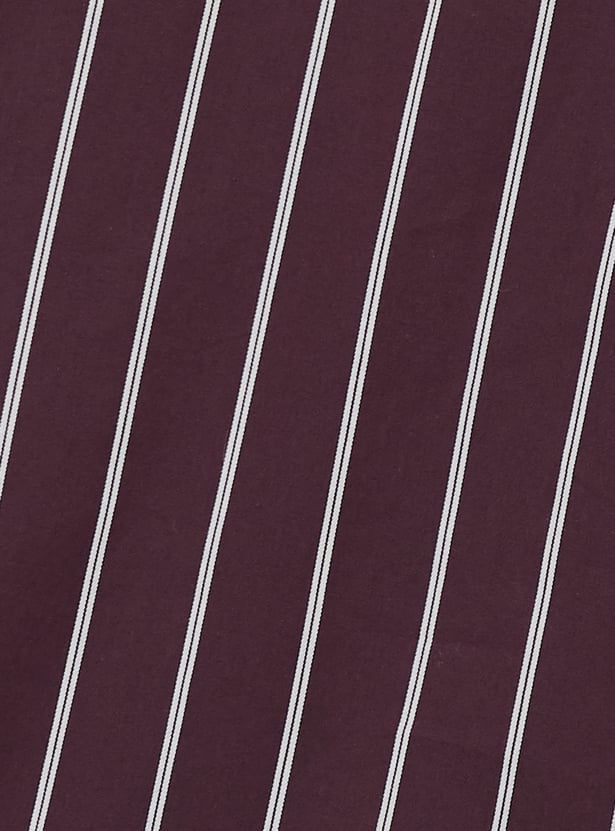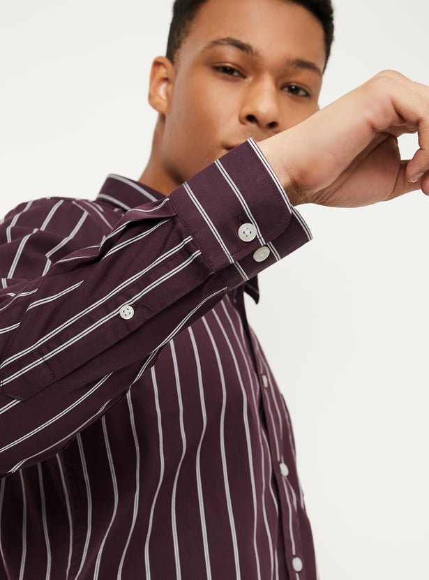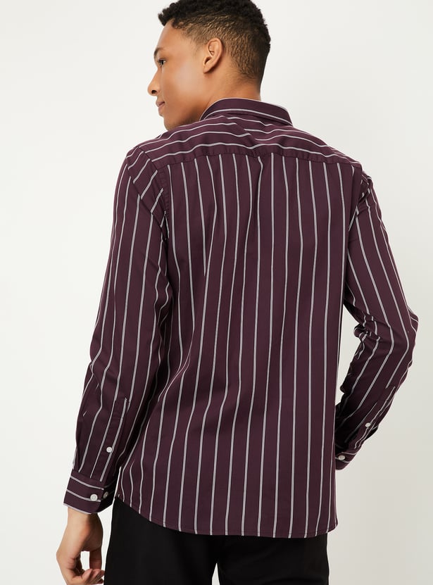 Elevate your casual wardrobe with this striped shirt, featuring a spread collar, full sleeves, a patch pocket, and a button placket for a refined yet relaxed style.