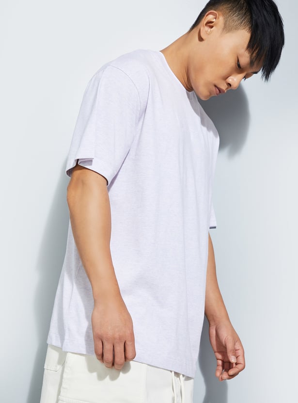 Effortlessly stylish, this embroidered relaxed fit T-shirt features a classic crew neck and half sleeves, blending comfort with subtle detailing for an elevated casual look.