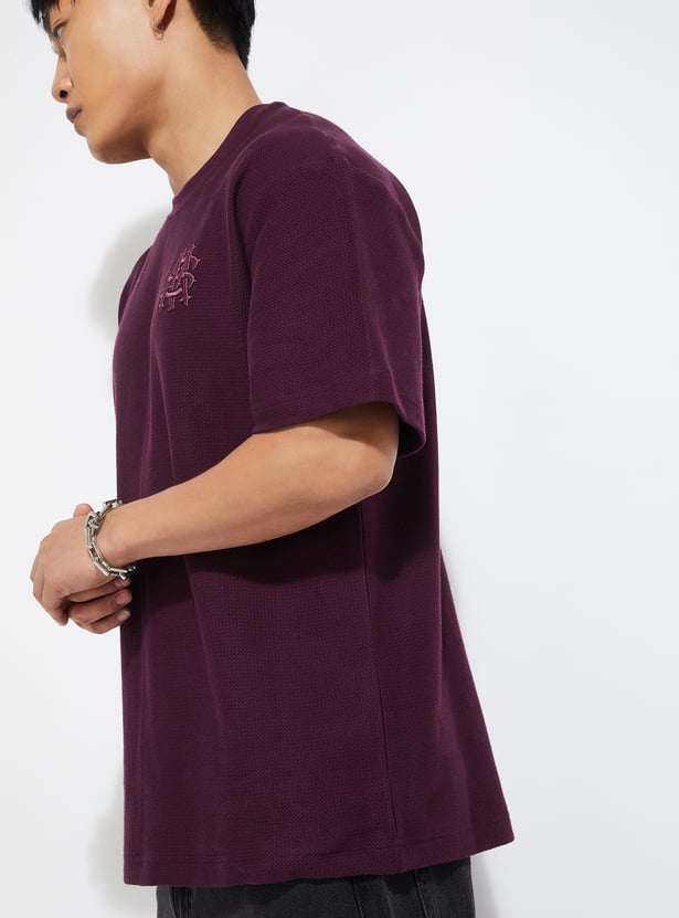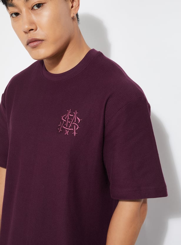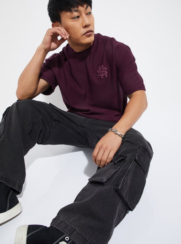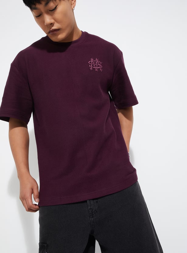 Keep it casual and comfortable with this knit oversized T-shirt, featuring a classic crew neck and half sleeves for an easygoing everyday look.