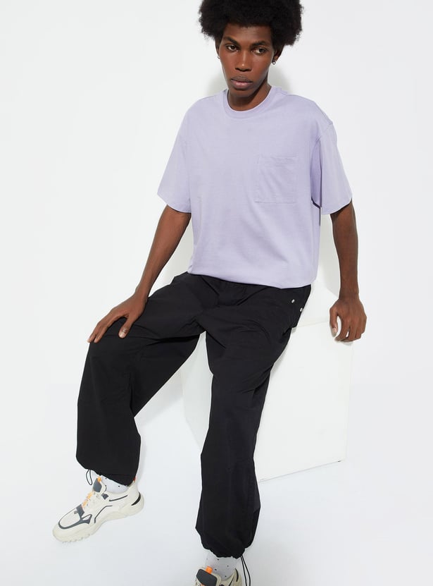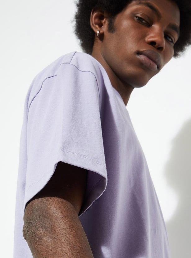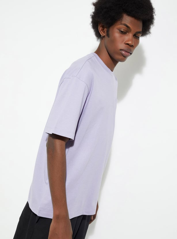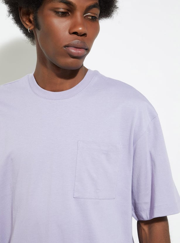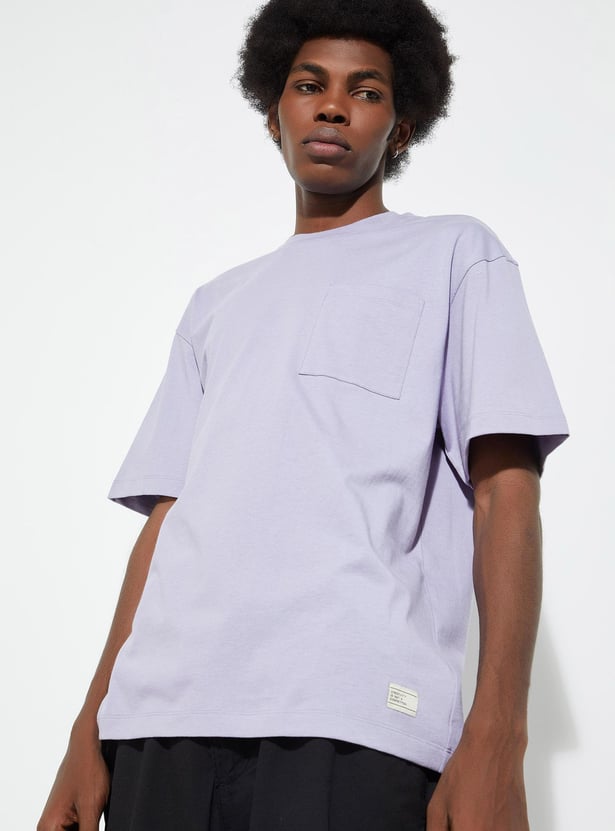 Elevate your casual wardrobe with this solid-finish T-shirt. It is designed with a classic crew neck, short sleeves, a patch pocket and an oversized profile.