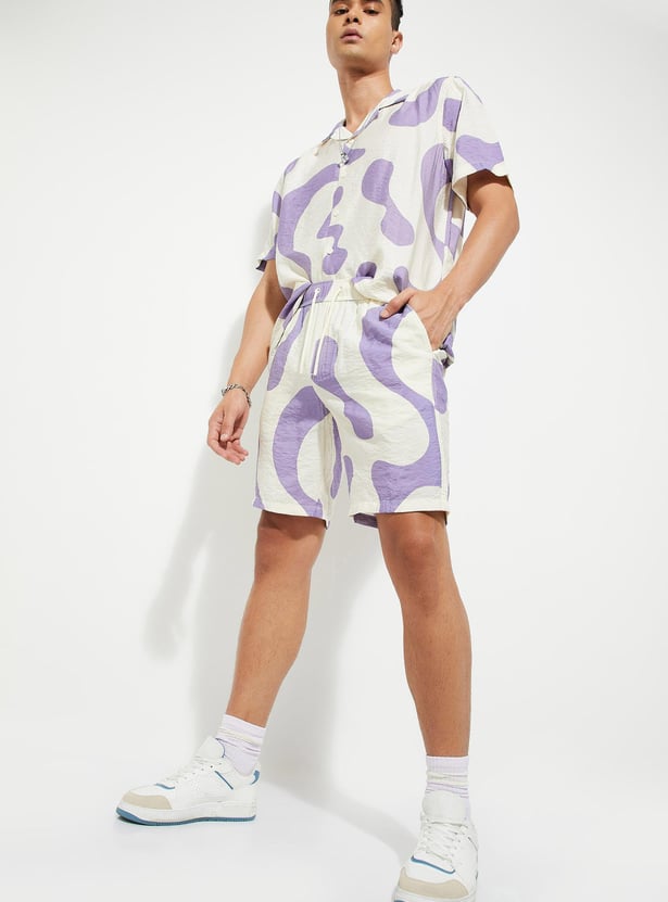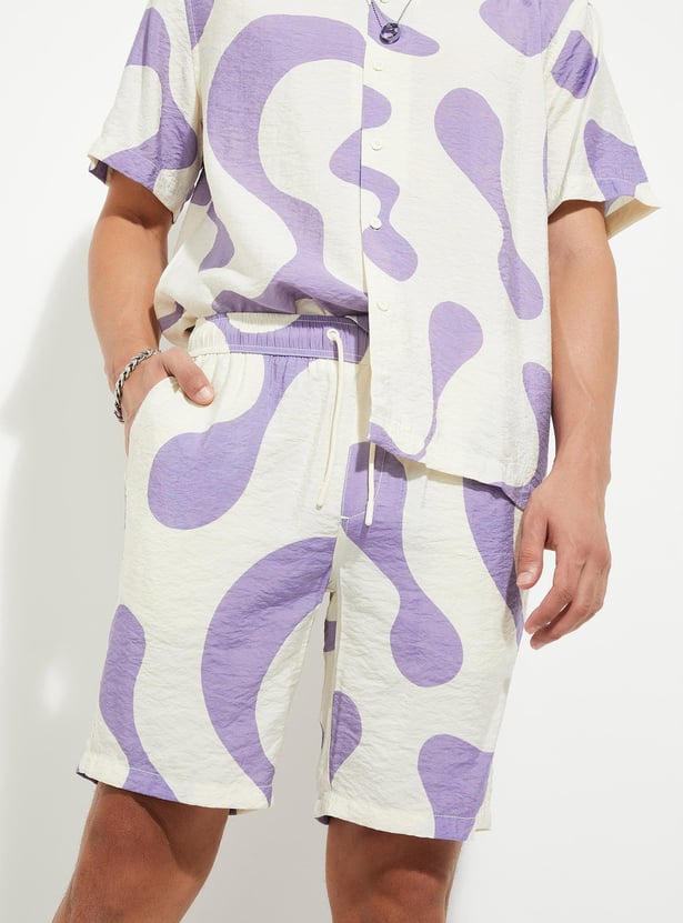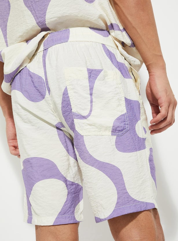 Add an extra dose of style to your vacation wardrobe with this pair of shorts. It is crafted in a relaxed fit profile for roomy comfort. It has a drawstring waist, insert pockets, and a back patch pocket. The abstract prints lend a quirky look.