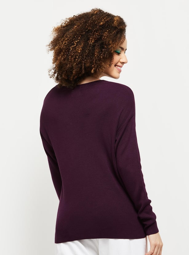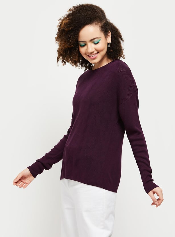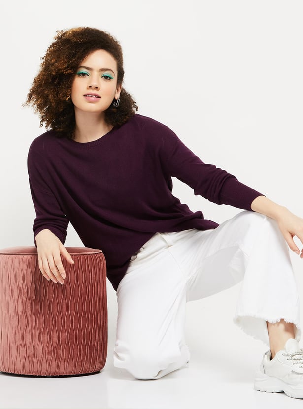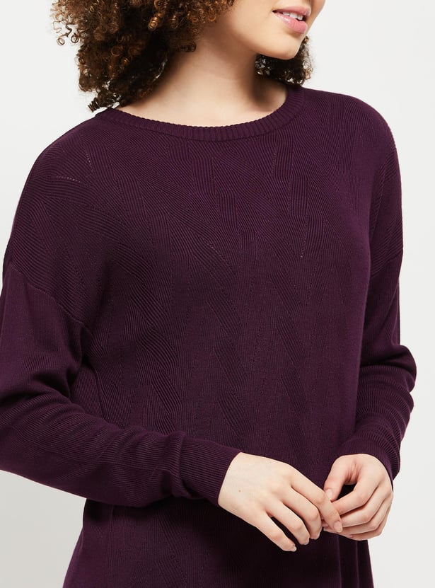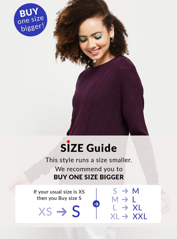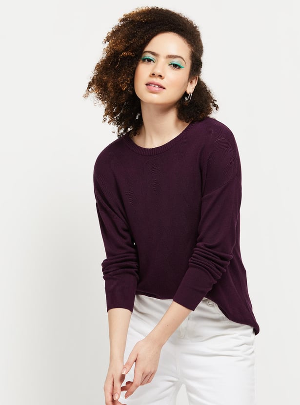 Cosy up your winter style with this sweater designed with chevron knit patterns. It is fashioned with a round neckline, drop shoulders, full sleeves, and ribbed trim.