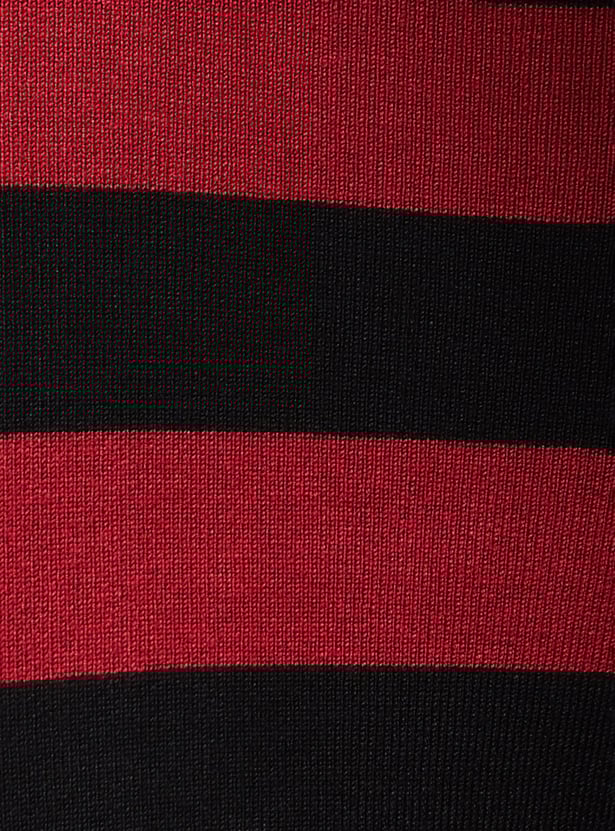 Make a style quotient with this knitted crop top designed with a colour-blocked surface, round neckline, and full sleeves.
