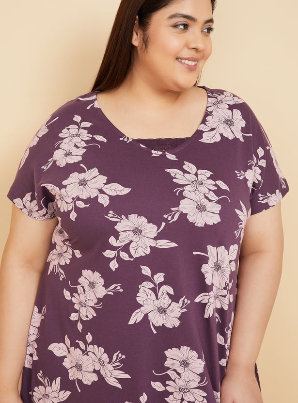 Slip into sweet comfort with this floral print nightgown, featuring a classic round neck and soft half sleeves. Delicate lace inserts add a romantic touch, making it a perfect blend of comfort and charm. Model Size :