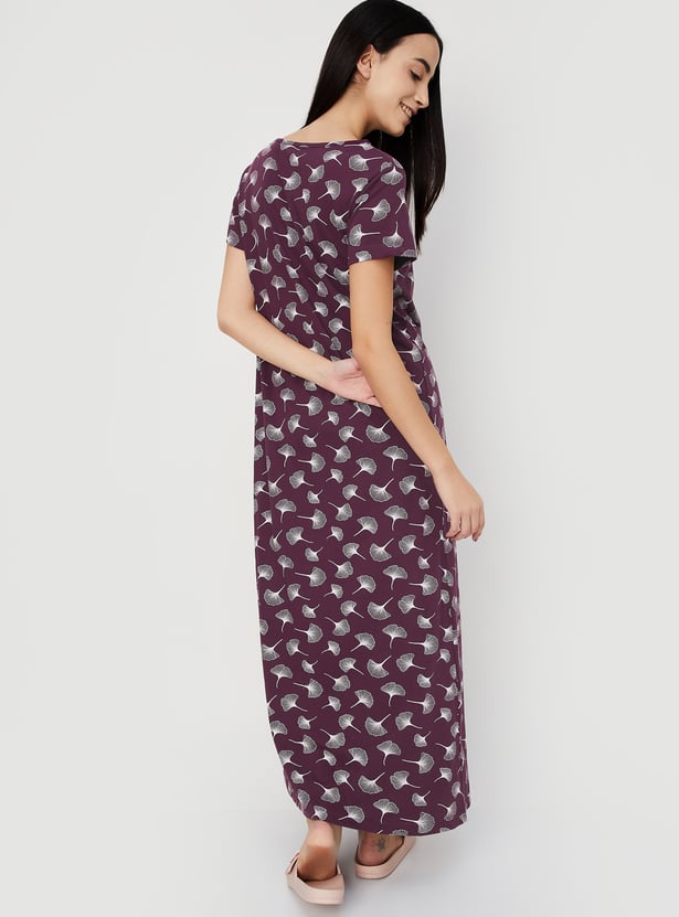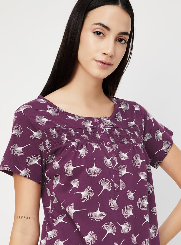 Ensure a restful night's sleep in this nightgown designed for comfort. It features charming all-over prints, a round neck, short sleeves, and a smocked detail at the yoke, complemented by a convenient button closure. Perfect for unwinding and relaxing in style.