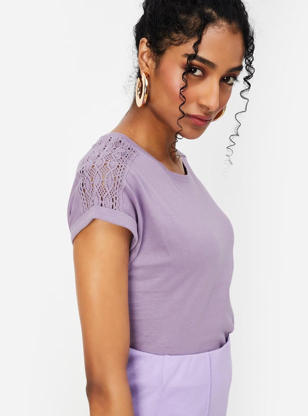 Women Lace Panelled T-shirt