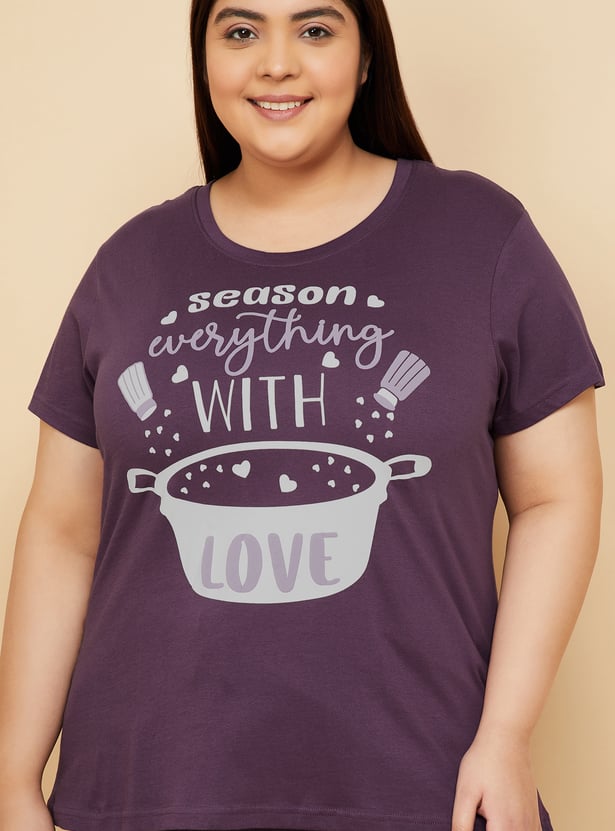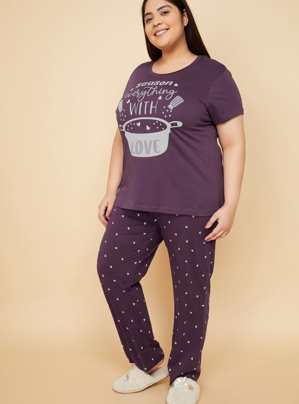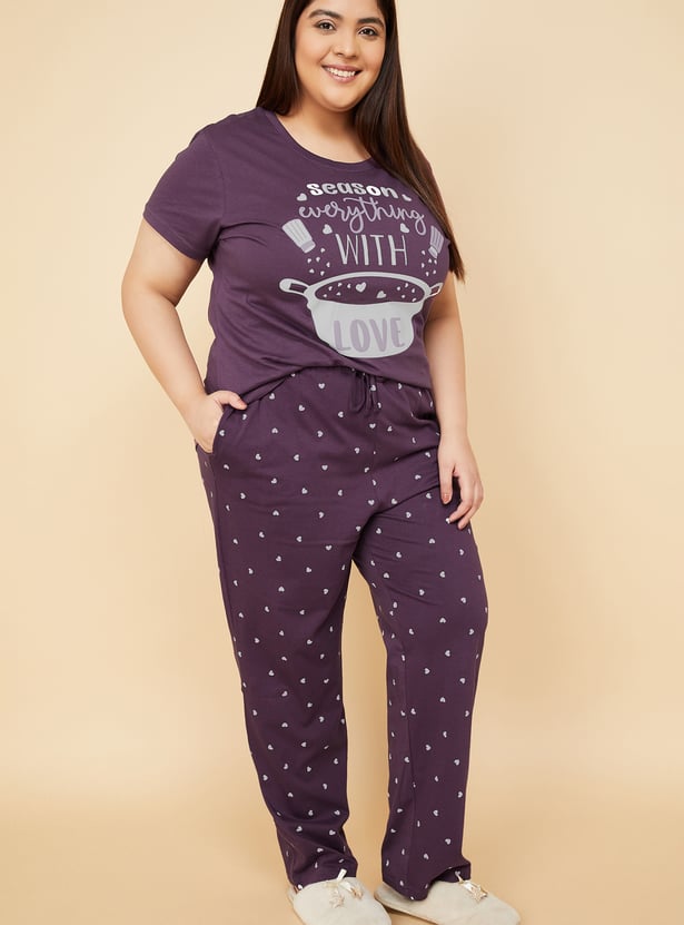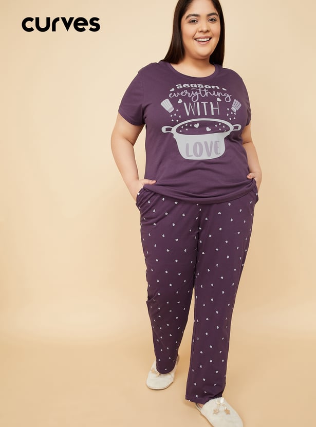 Relax in style with this comfortable and chic printed PJ set. The set includes a printed T-shirt featuring a round neck and half sleeves, perfect for a cosy night's sleep or lounging around the house. The printed pyjamas come with an elasticated waist and drawstring for a secure and adjustable fit. Model Size :