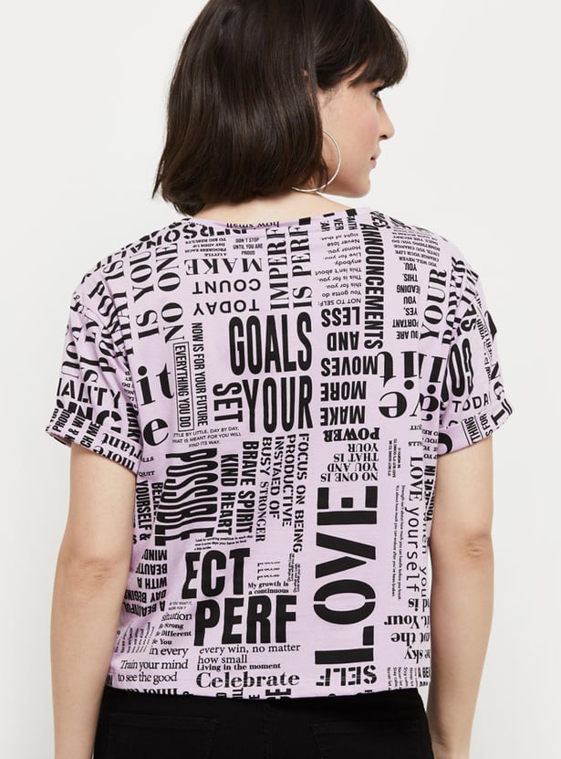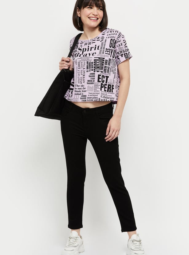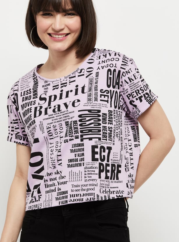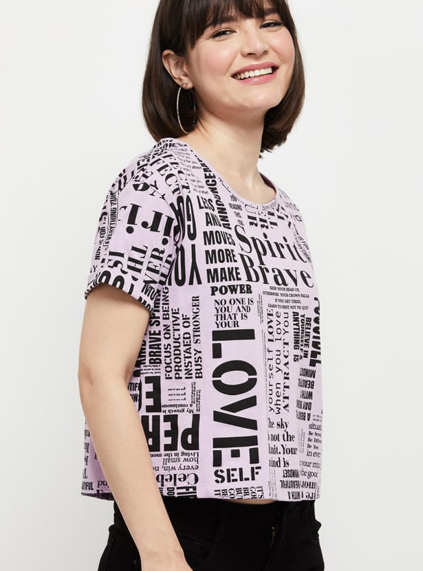 Women Printed Round Neck Crop Top