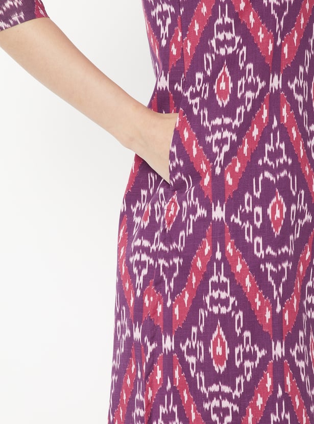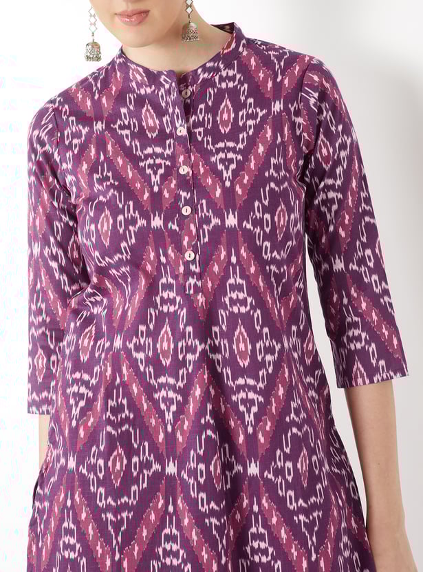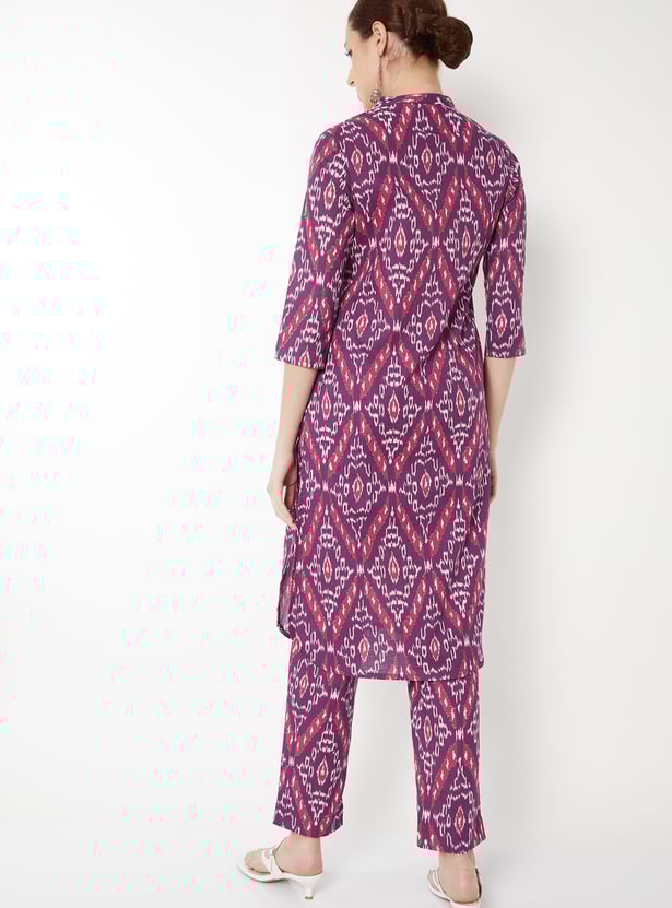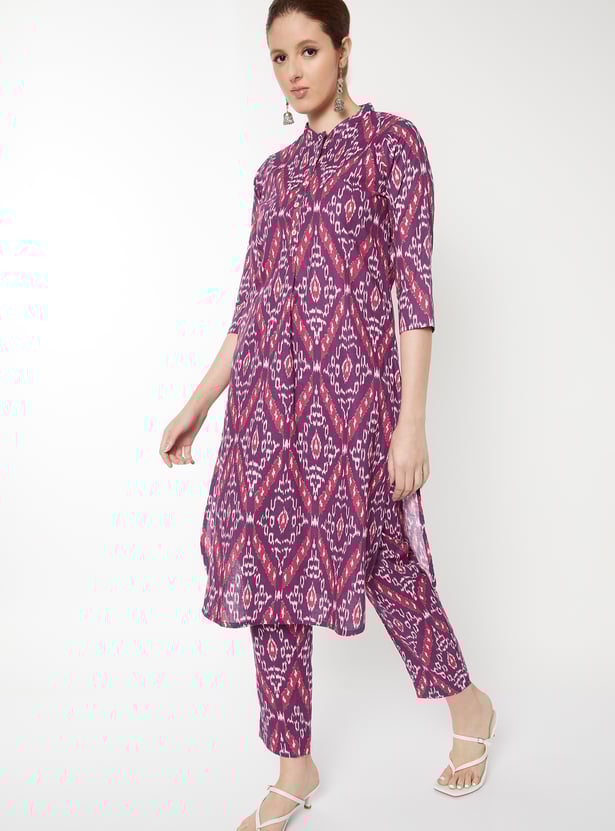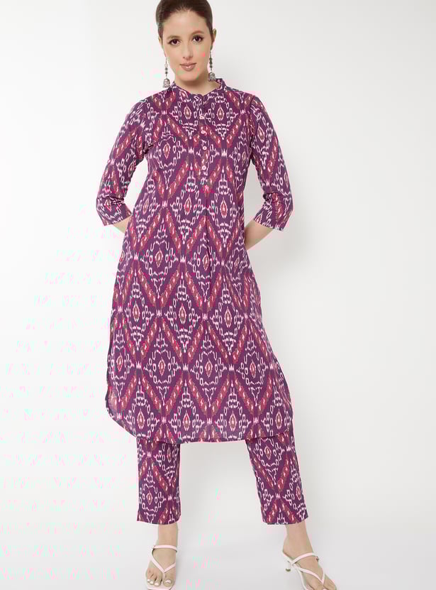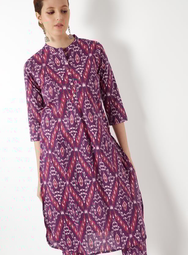 Elevate your ethnic wardrobe with this printed straight kurta set, designed for comfort and elegance. The kurta features a band collar, button closure, side pocket, side slits, and 3/4th sleeves, offering a refined silhouette with practical detailing. It is paired with straight pants that have an elasticated waist, ensuring ease of movement and a relaxed fit.