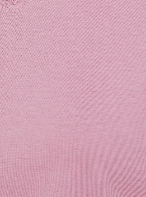 Stay effortlessly stylish with this solid T-shirt featuring a classic V-neck and half sleeves. Its minimal design makes it a versatile staple for everyday wear. Model Size :