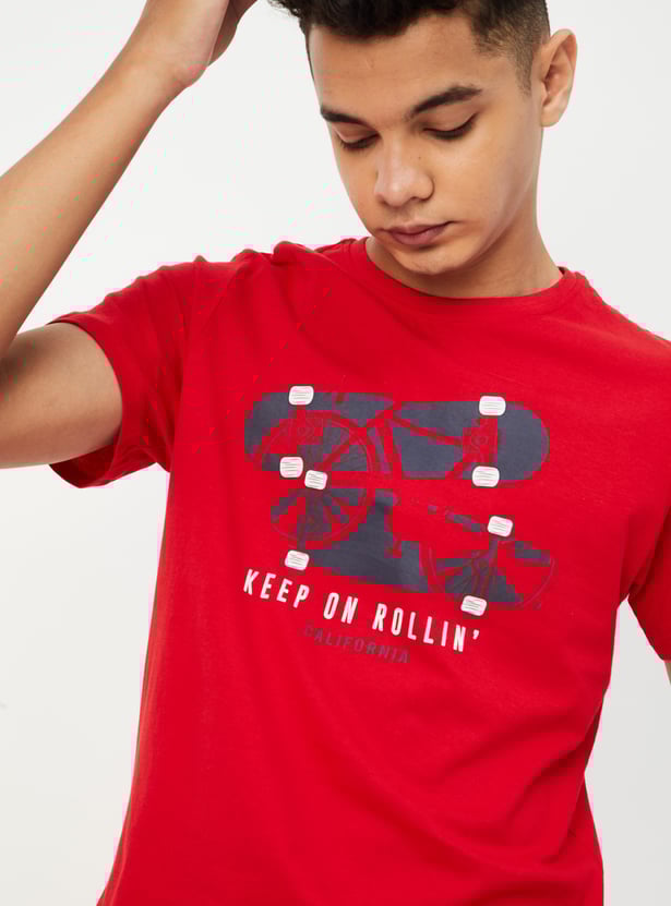 This graphic printed T-shirt with short sleeves and a crew neck will spruce up your child's casual attire.