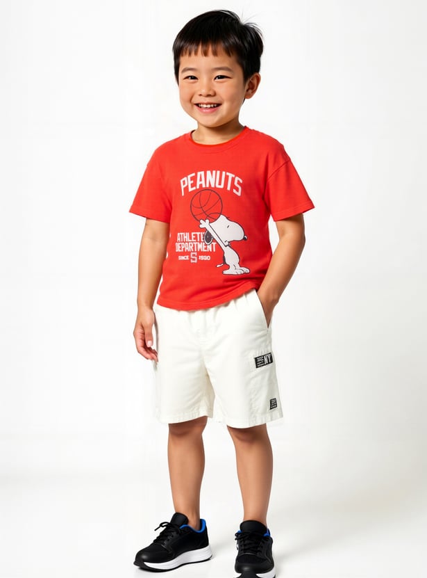 Let him showcase his love for Snoopy with this oversized Peanuts print t-shirt, featuring a classic crew neck and half sleeves for a relaxed fit. The playful graphic adds a fun, nostalgic touch—perfect for casual outings or everyday comfort.