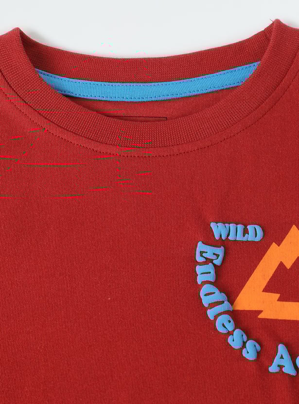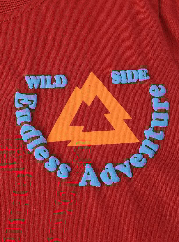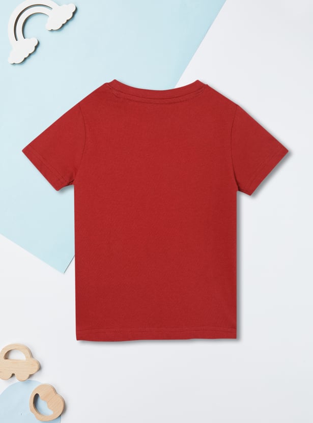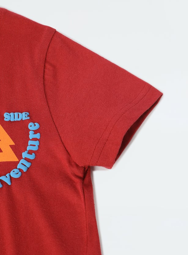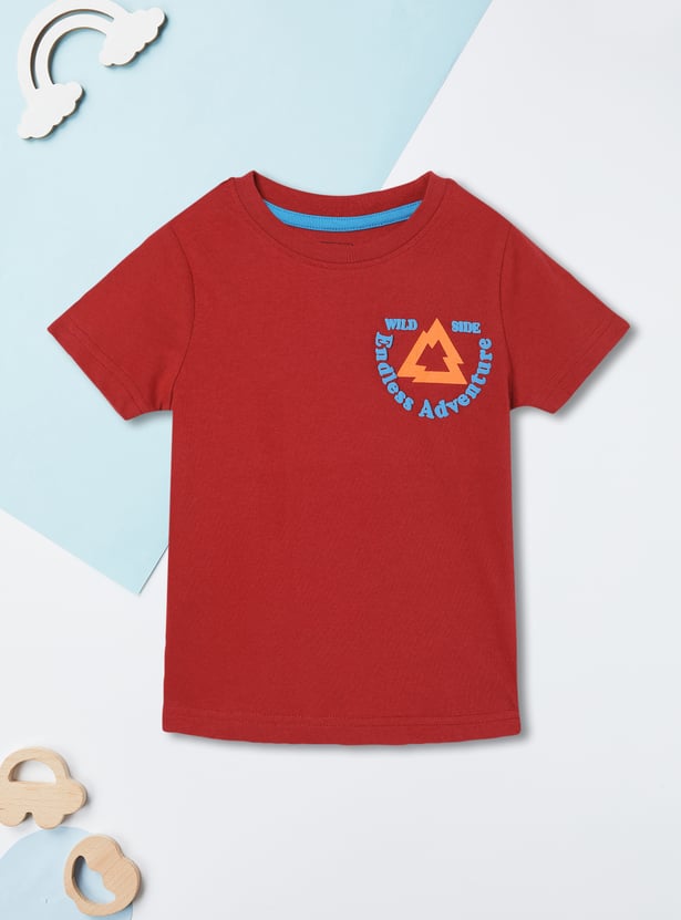 Get your little one vacation-ready with this comfortable and stylish placement printed T-shirt featuring half sleeves and a crew neck.