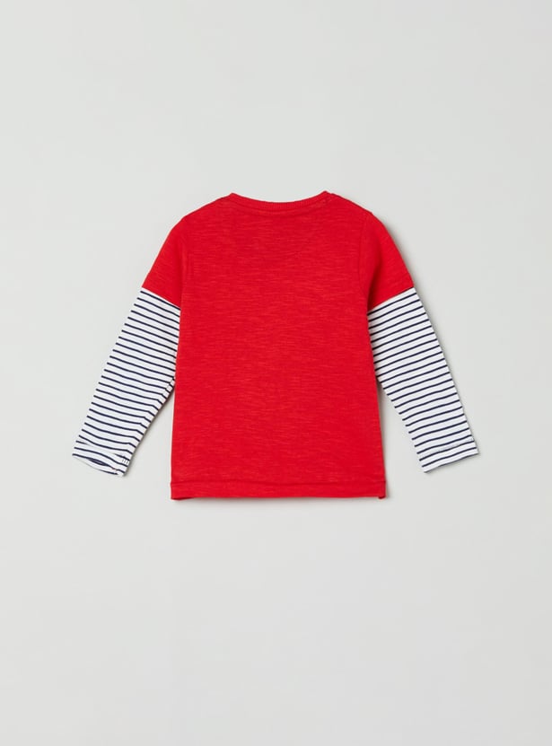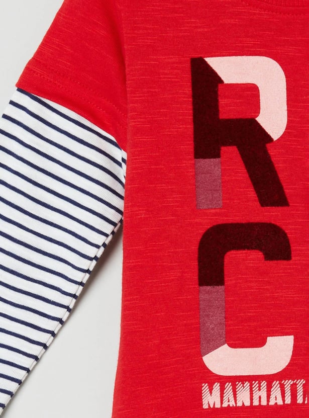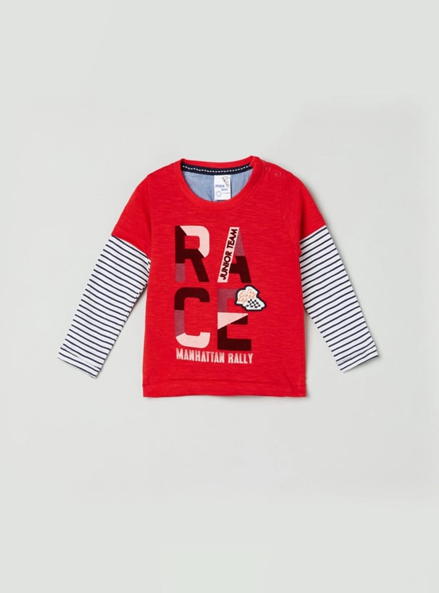 Give your little one a stylish look with this printed T-shirt. It is tailored with long sleeves and a crew neck.