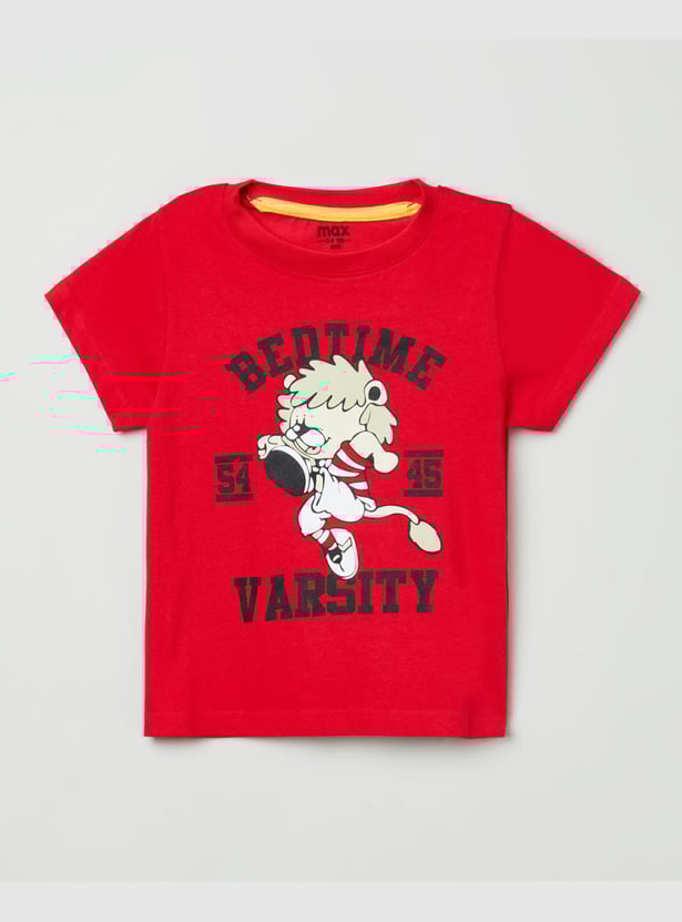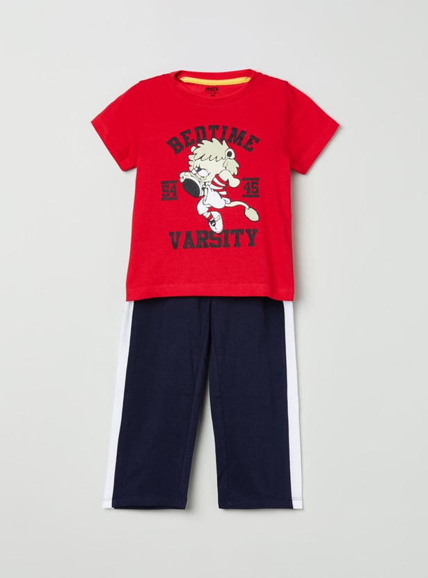 Boys Printed Crew Neck T-shirt with Track Pants
