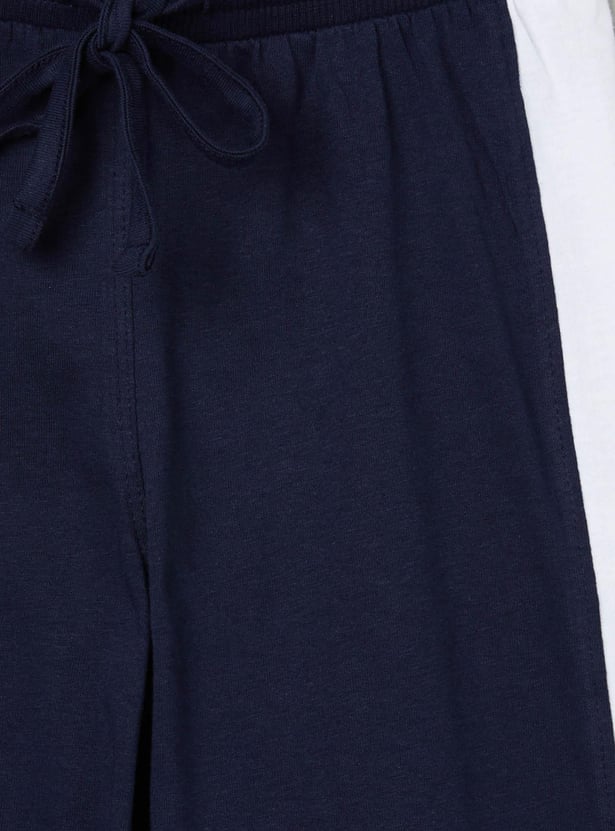 Give maximum comfort to your little one with this set comes with a printed t-shirt designed with a crew neck and short sleeves along with a pair of elasticated track pants to complete the ensemble.