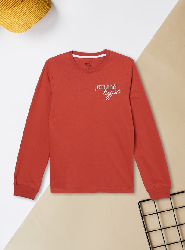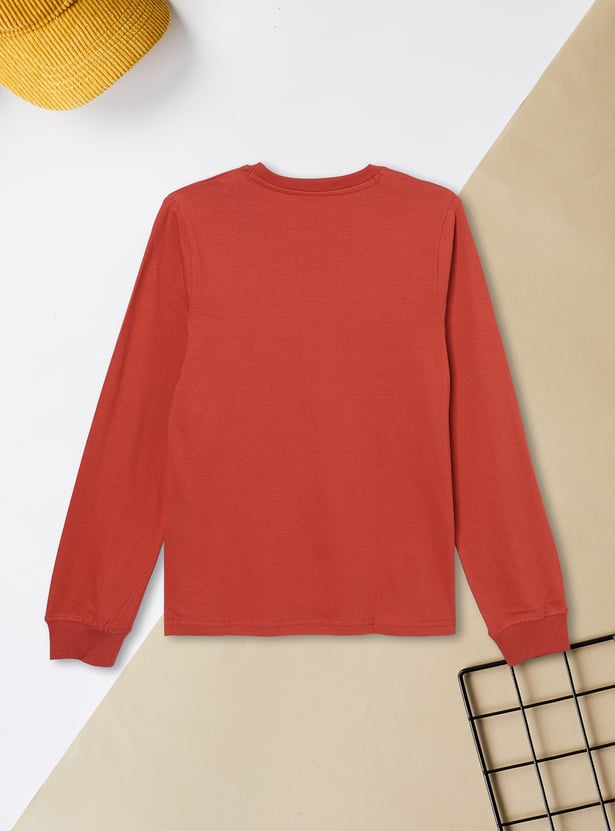 Add a pop of personality to your everyday look with this printed t-shirt, designed with a classic crew neck and full sleeves. The print brings a fun and casual edge to your wardrobe.