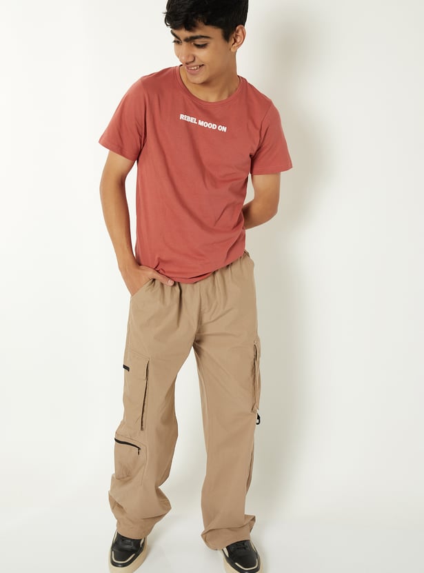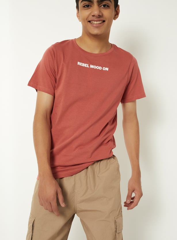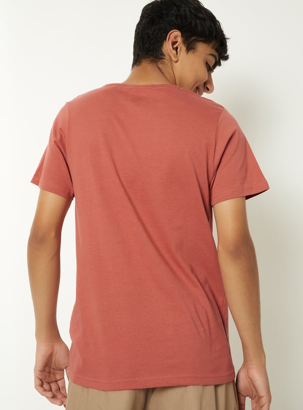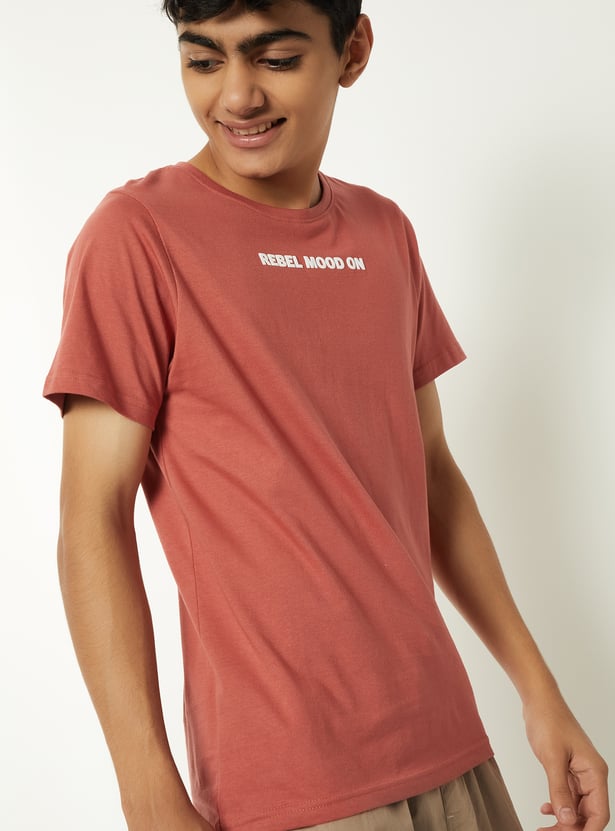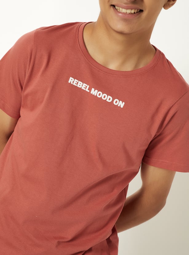 Add a playful touch to your casual wardrobe with this printed T-shirt, featuring a classic crew neck and comfortable half sleeves.