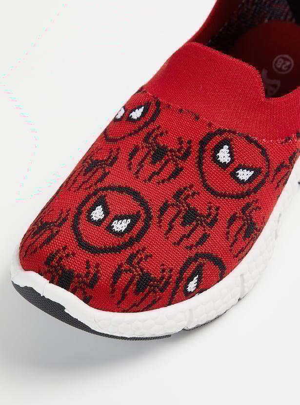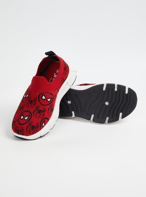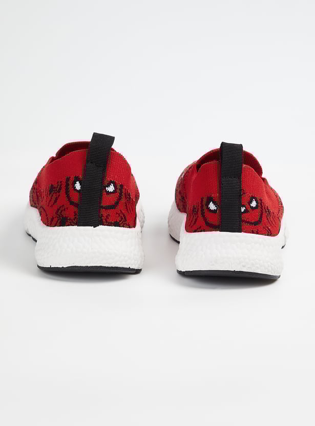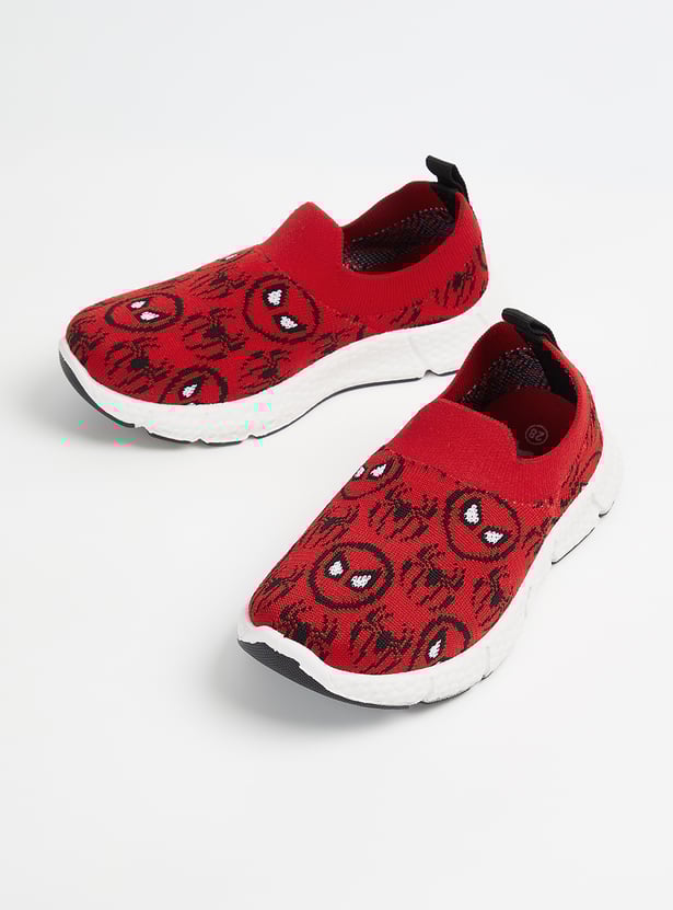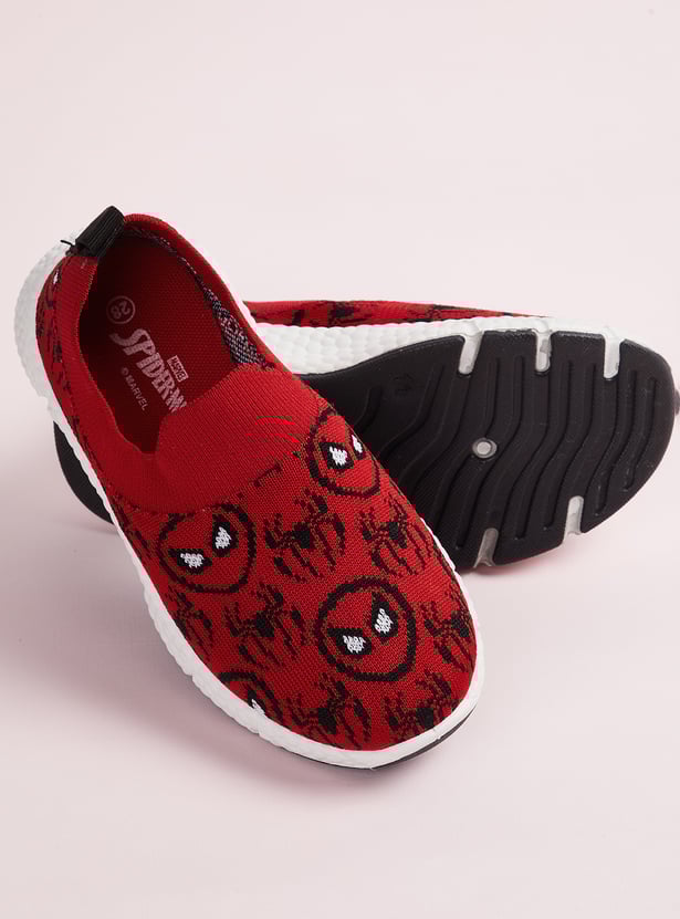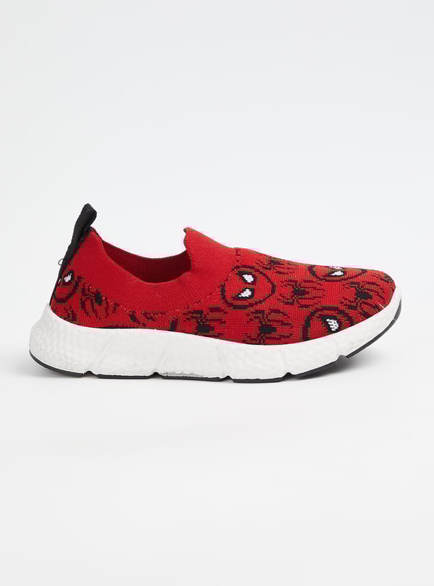Bring superhero energy to his everyday steps with these comfortable slip-on shoes. Designed with a round toe and a breathable flyknit upper featuring a Spider-Man print, they offer a flexible, snug feel. The slip-on style ensures easy wear, while the durable outsole provides reliable grip for active days.