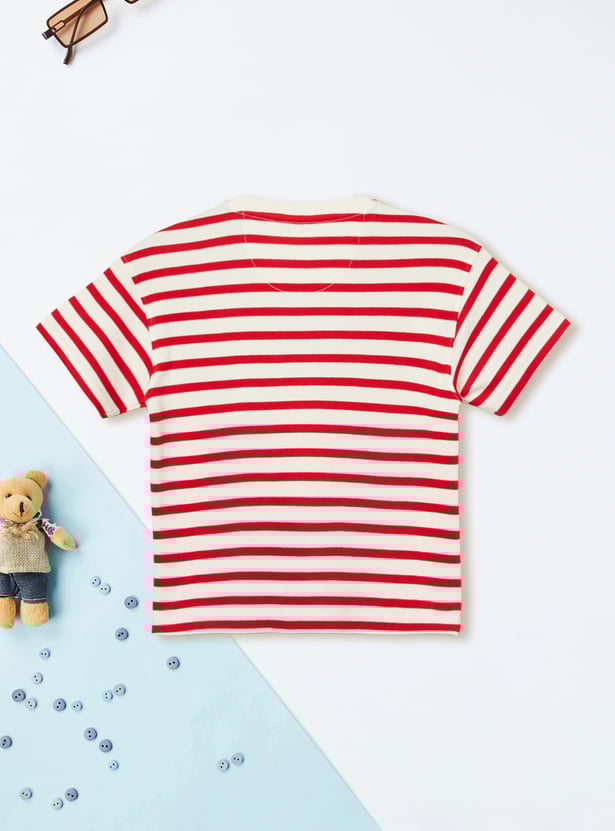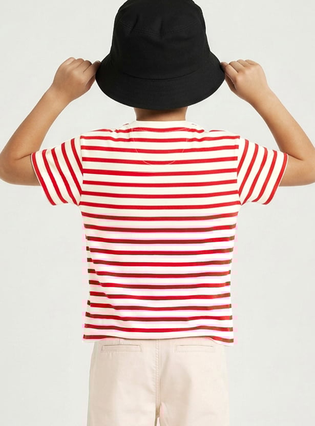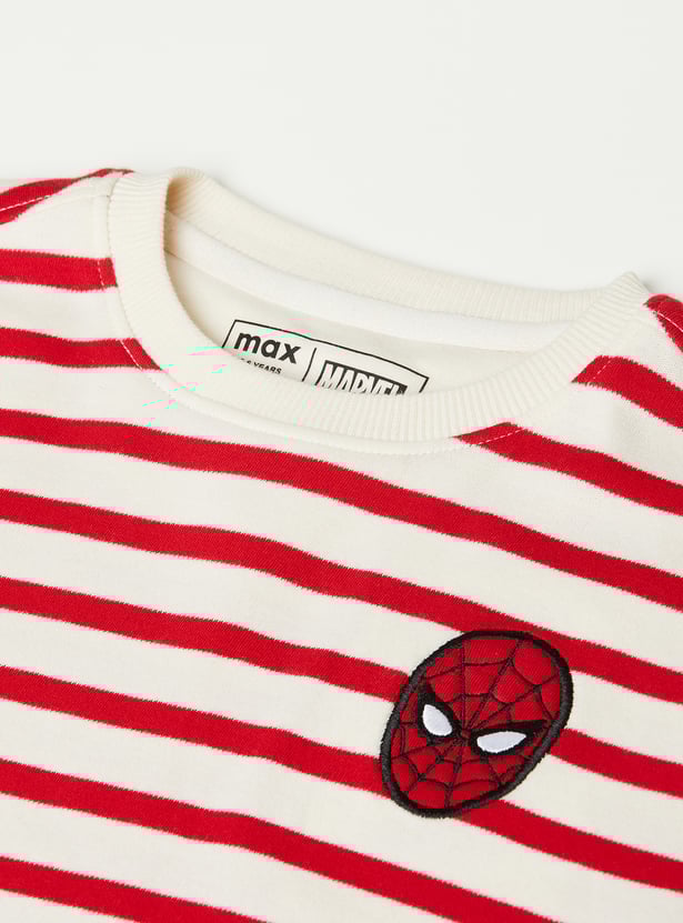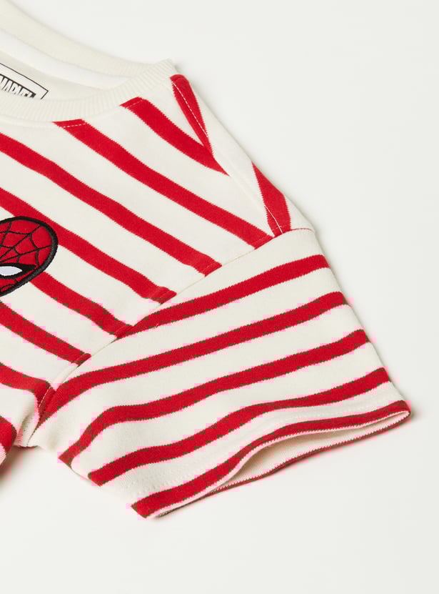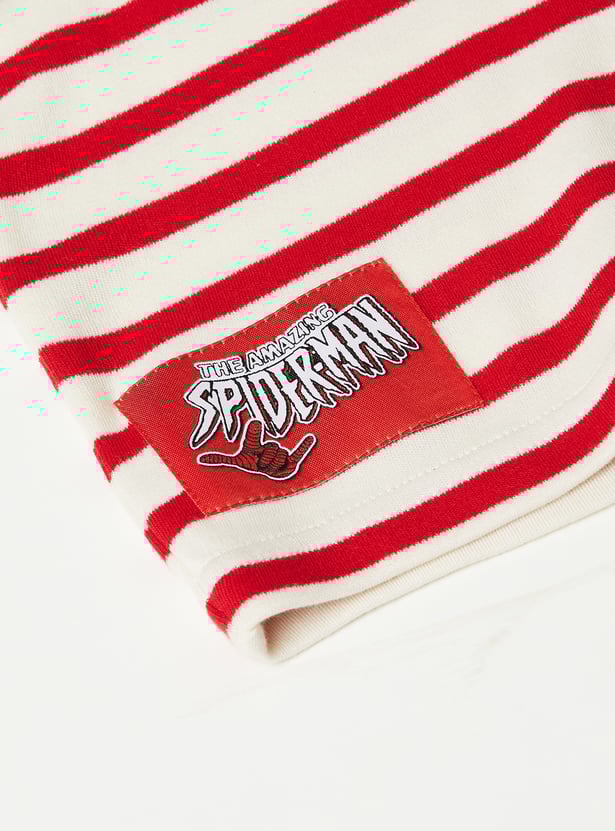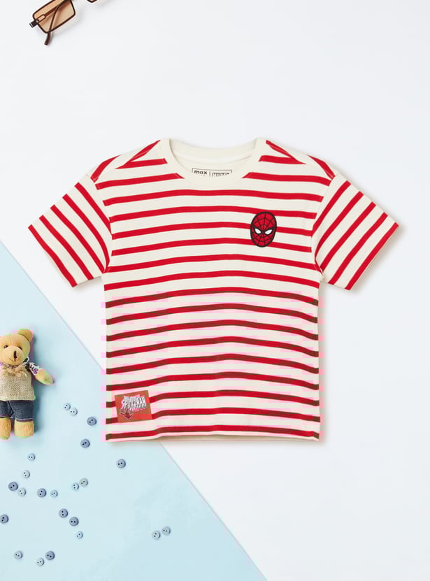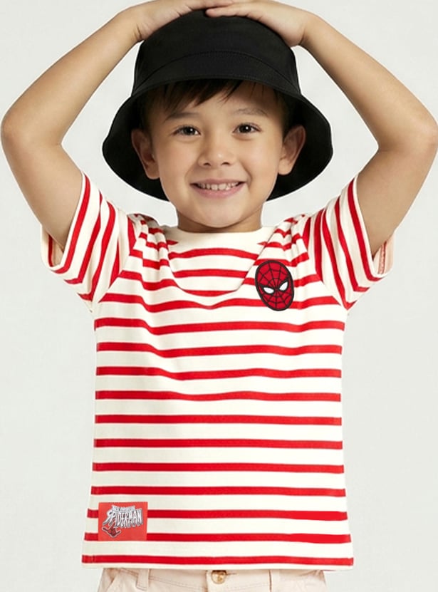 Show off your fandom with this striped Spiderman t-shirt, designed with a classic crew neck and comfortable half sleeves. Crafted for an easy fit, it’s perfect for everyday wear with a bold, heroic touch.