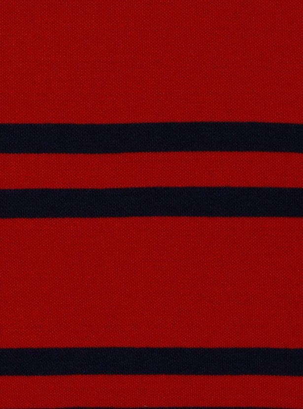 Dress up your little champ in casual comfort, with classic style and appeal. Presenting a smart striped t-shirt, amped up with playful appeal, half sleeves, and polo neck.