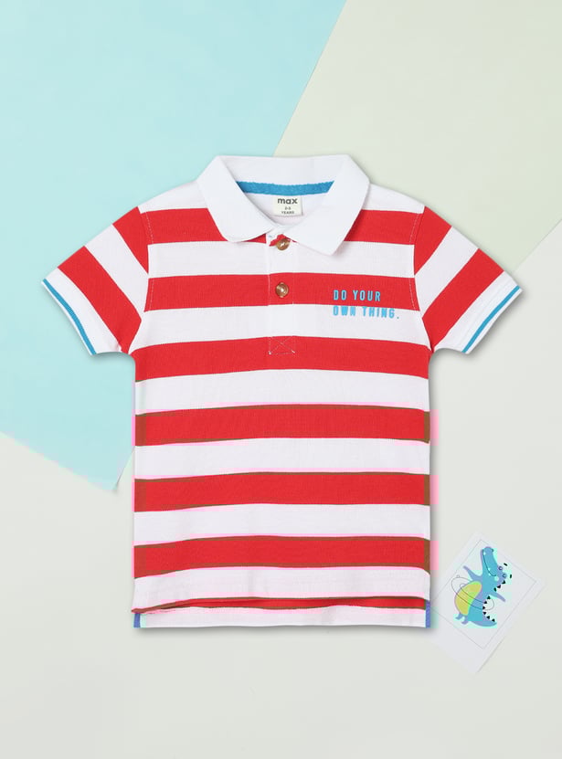 Your kid will be ready for action in this playful T-shirt. It features stripes, a polo collar, and short sleeves, making it a stylish and comfortable choice for everyday adventures.