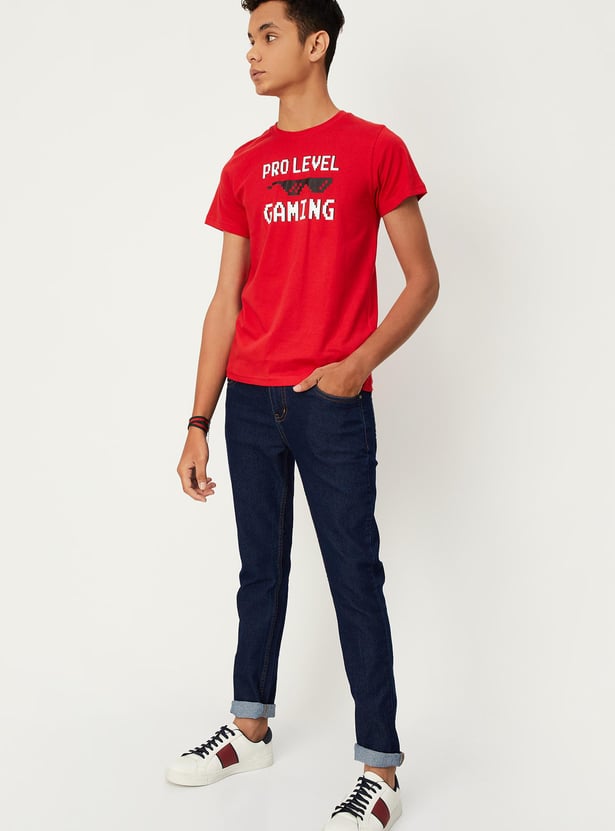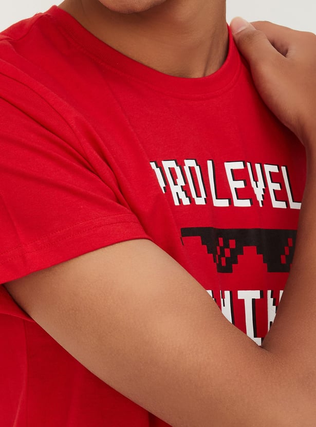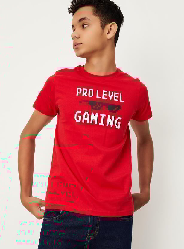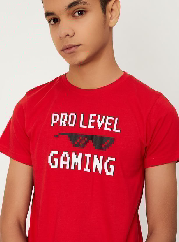 Boys Typographic Printed Cotton Pure Cotton T-shirt