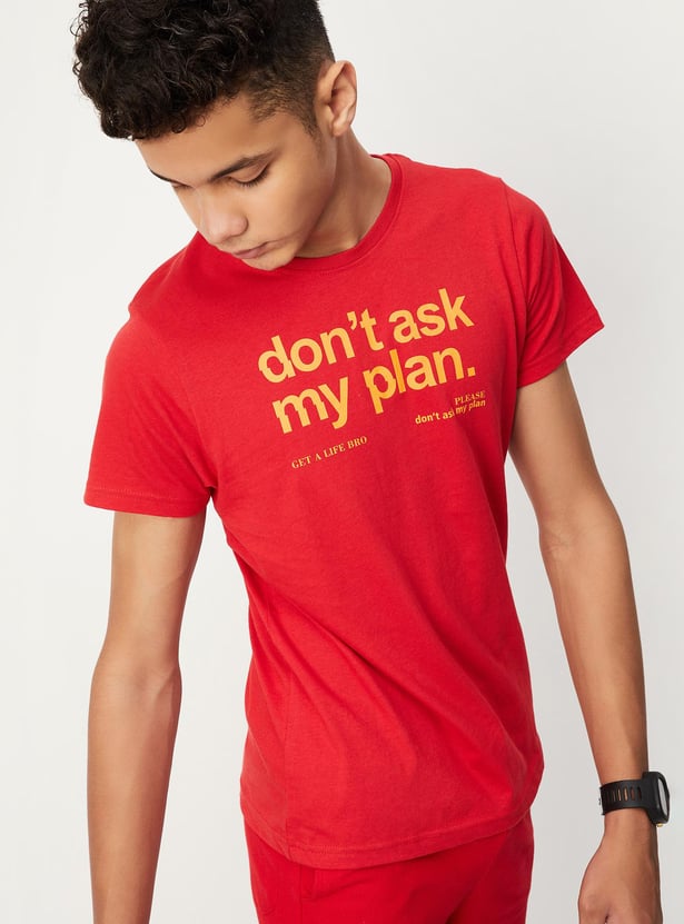 Boys Typographic Printed Crew Neck Cotton T-shirt
