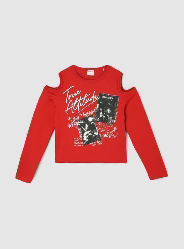 Girls Cold Shoulder Graphic Print Crop T-shirt
