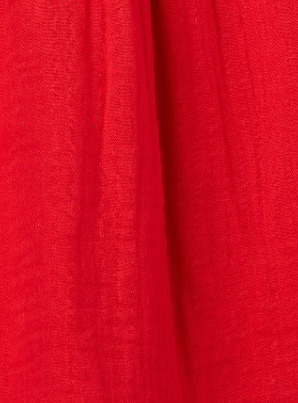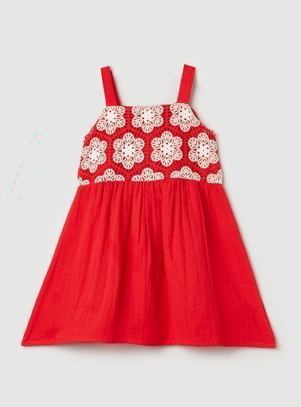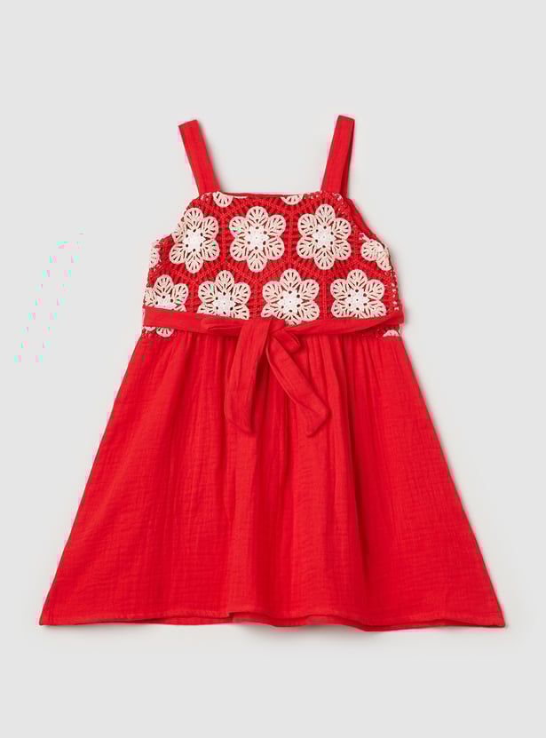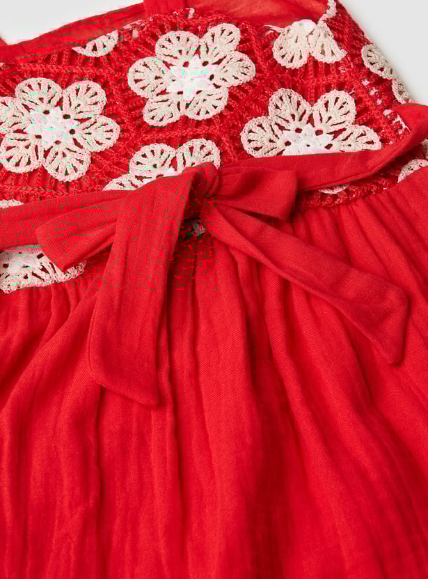 Embrace charm with this crochet embroidered dress, featuring delicate stitching for a textured, boho-inspired look. The shoulder straps and square neck enhance the flattering fit and flare silhouette.