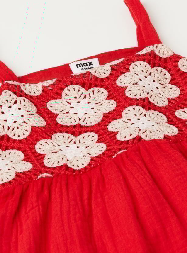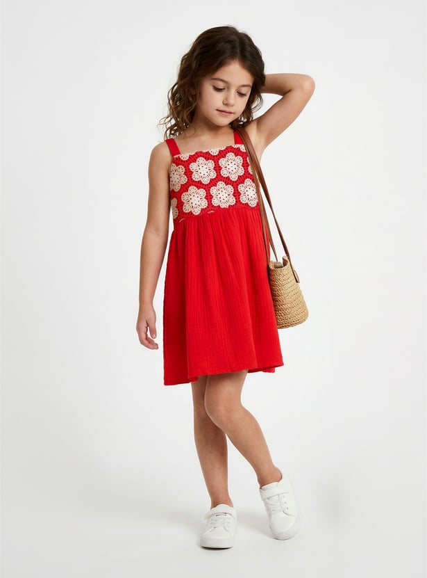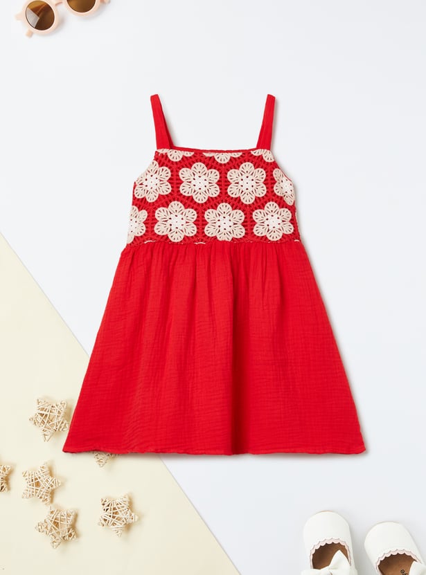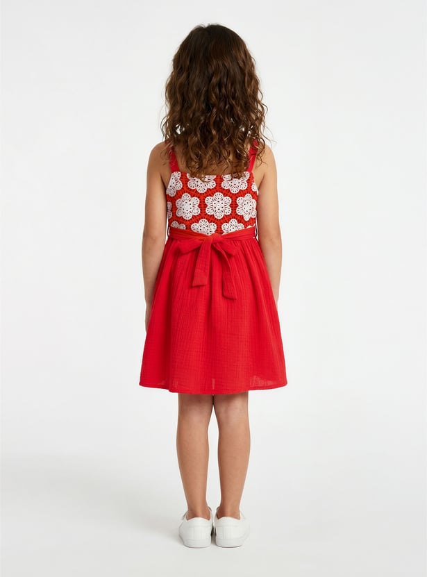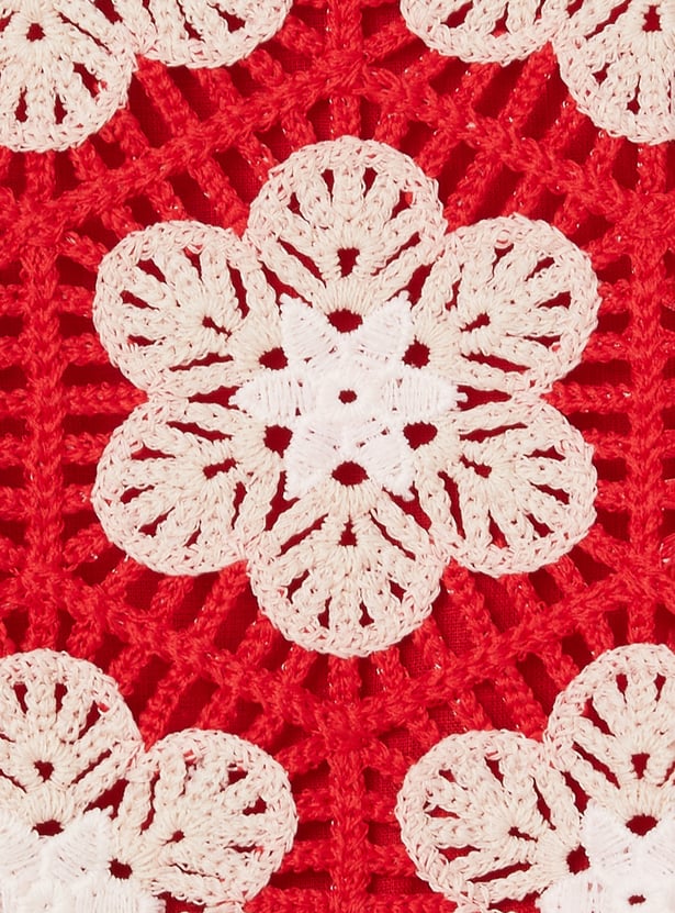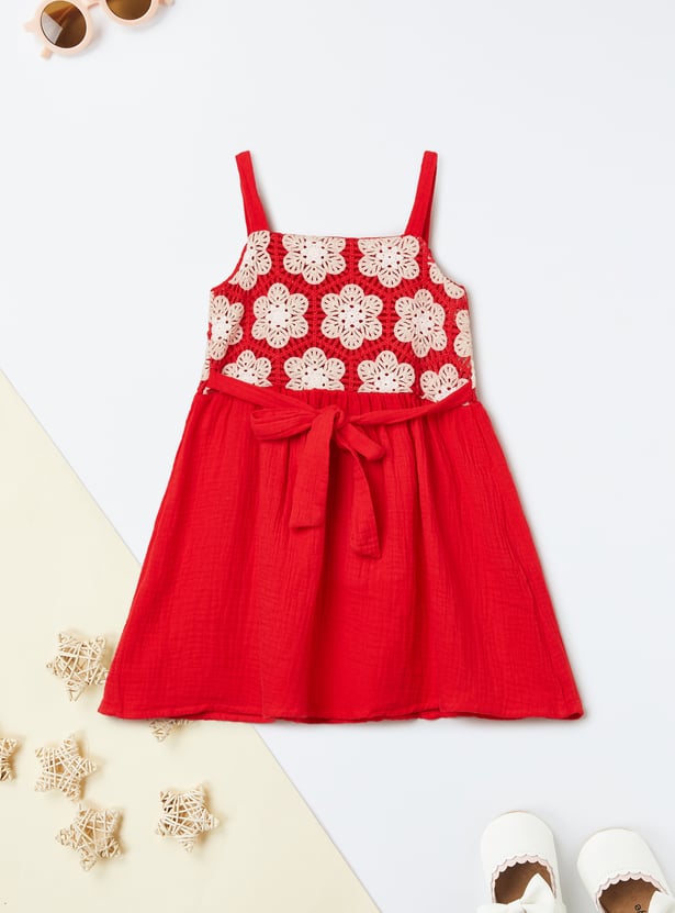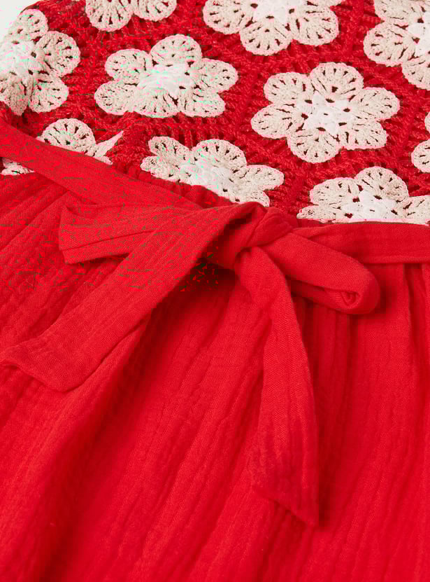 Go on a playdate with this elegant crochet knit dress, featuring a chic square neck, sleeveless design, and a back belt closure for a flattering fit. Perfect for sunny days or stylish getaways.