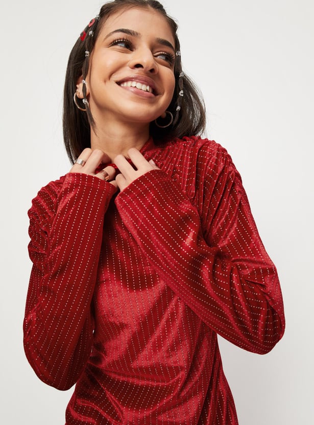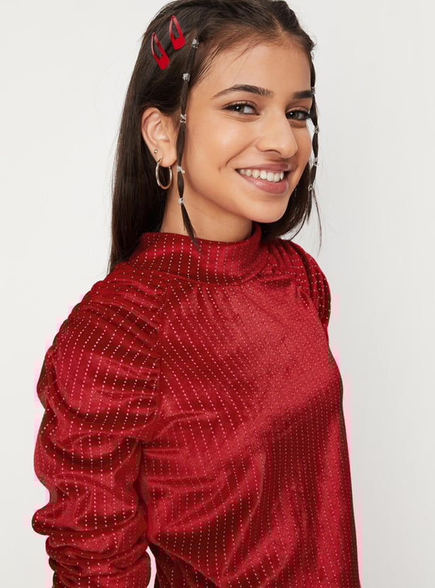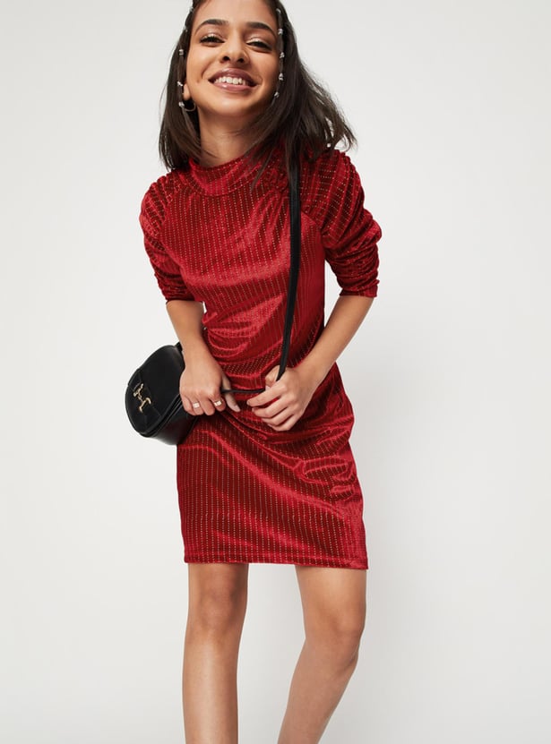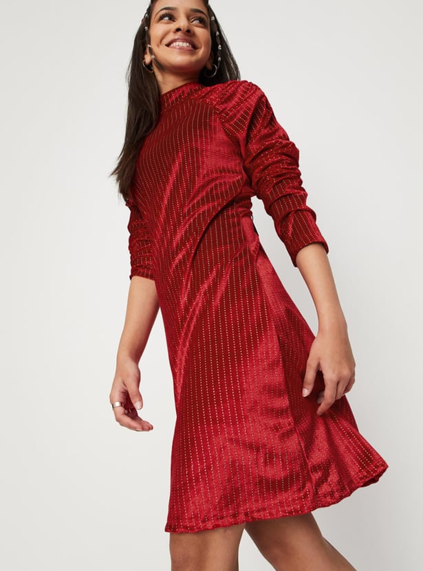 Girls Embellished Full Sleeves High Neck A-Line Dress