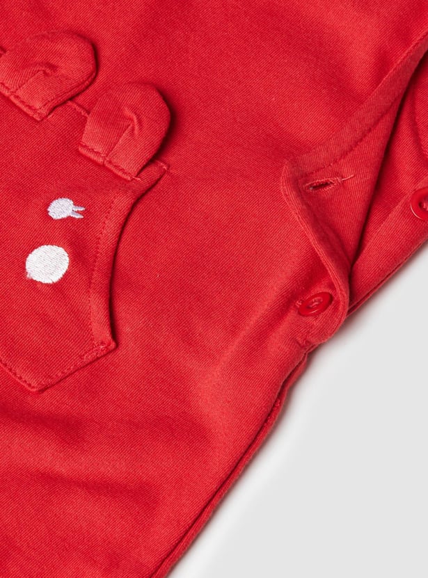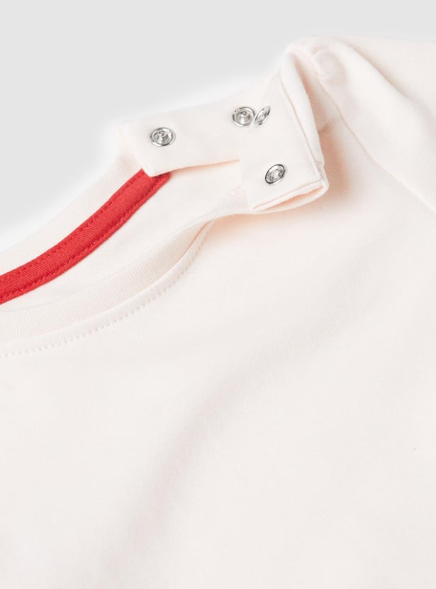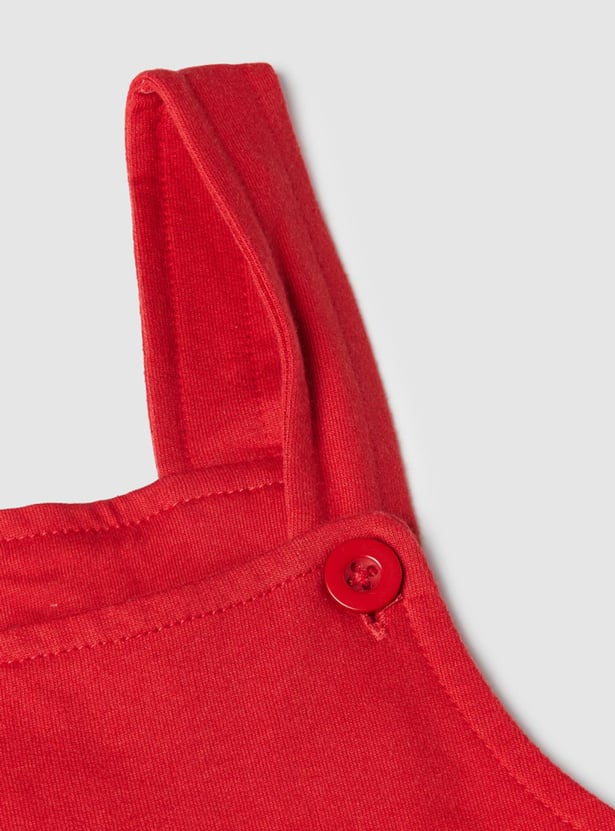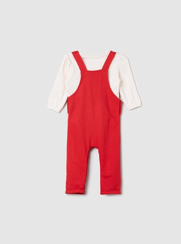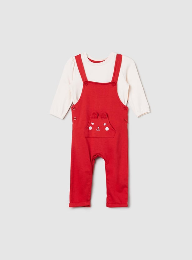 This romper set for babies comes with an embroidered romper that features a square neck and button closure along with a solid t-shirt.