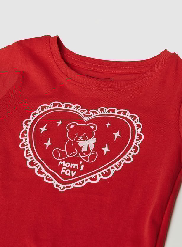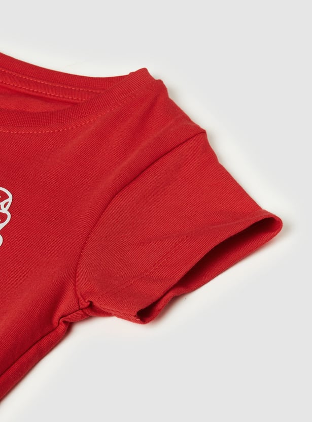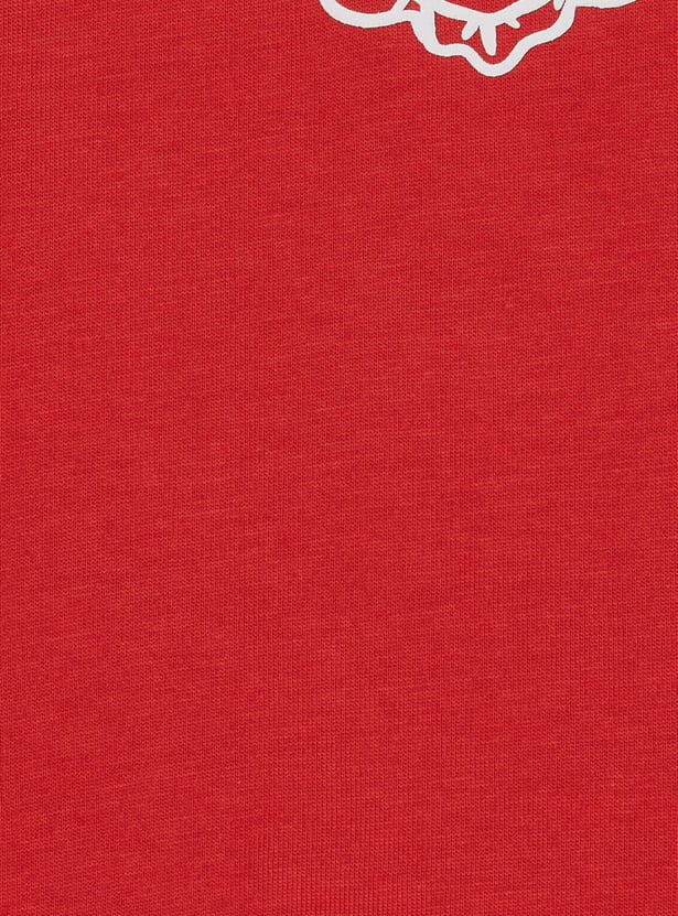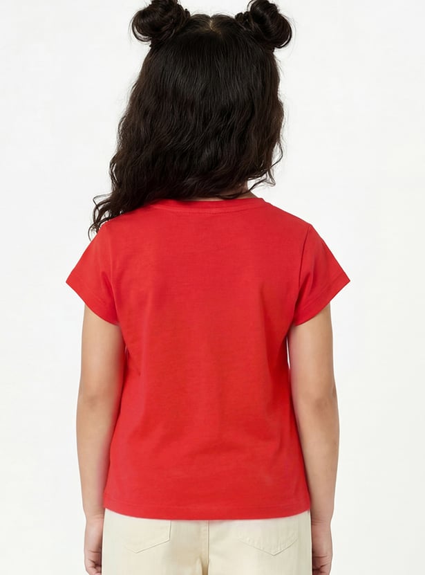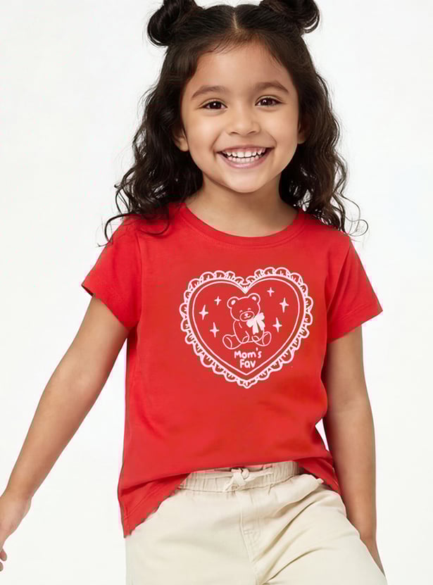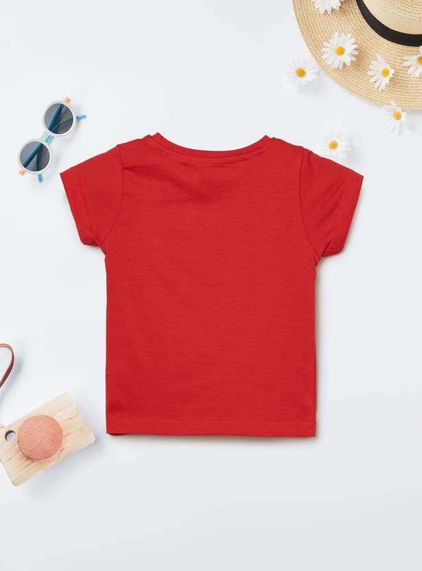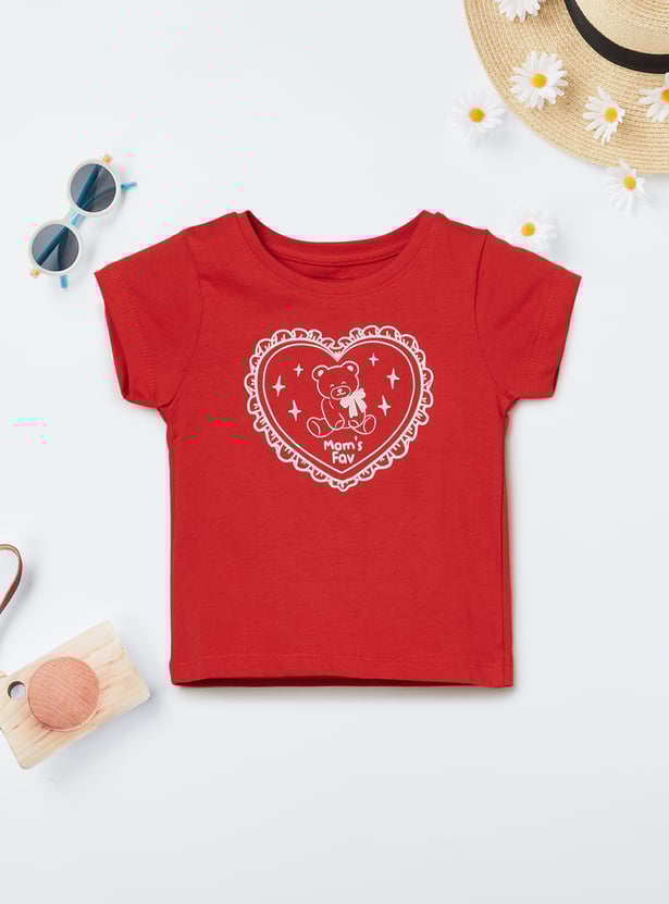 This graphic print t-shirt features a crew neck, straight hem, and half sleeves.