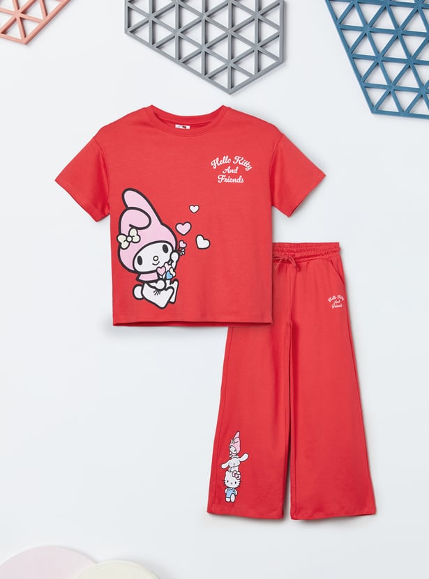 Girls Hello Kitty Print Trousers Set