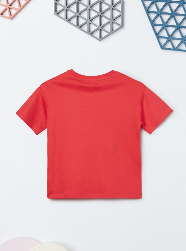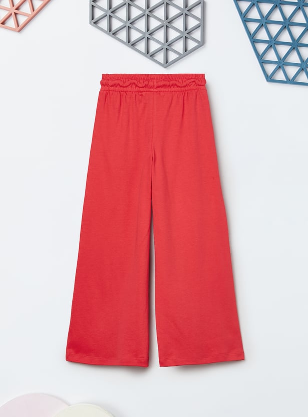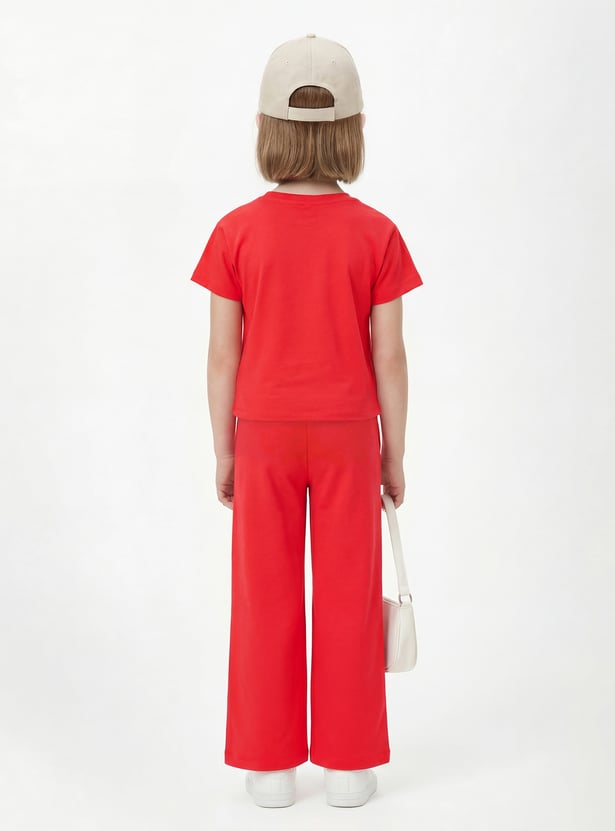 Add a playful twist to your wardrobe with this Hello Kitty print trousers set. The t-shirt features a classic round neck and half sleeves for easy comfort, while the trousers come with an elasticated waist for a relaxed fit.