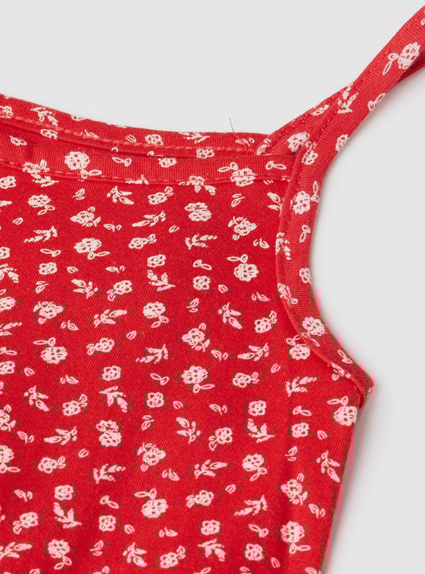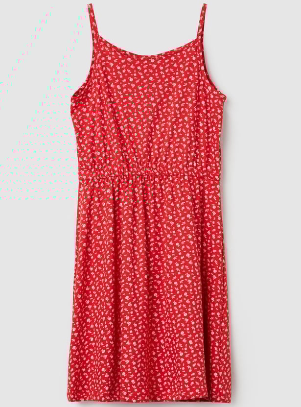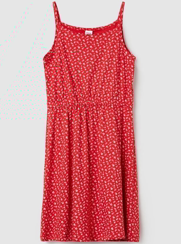 Girls Printed Spaghetti Neck A-Line Dress